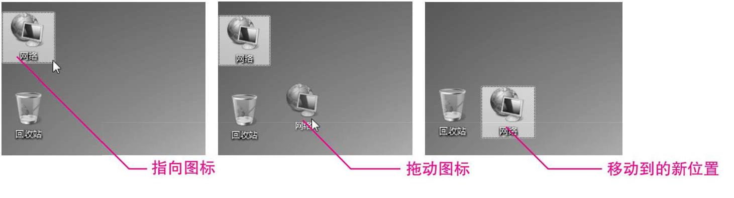 拖动是指选中某个对象后,按下鼠标左键不放,移动鼠标到指定位置后松开鼠标左键,此时该对象将移动到该位置,拖动操作常用于移动某个对象的位置,如图1.30所示。