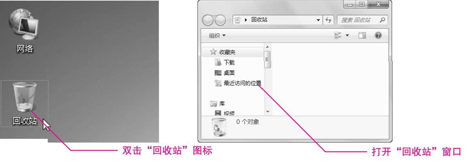 双击是指将鼠标指针指向某个对象后,连续按鼠标左键两次之后立即松开,且速度要快、动作要连贯,否则将被视为两次单击。双击通常用于启动某个程序、执行任务,以及打开某个窗口、文件或文件夹等,如图1.28所示。
