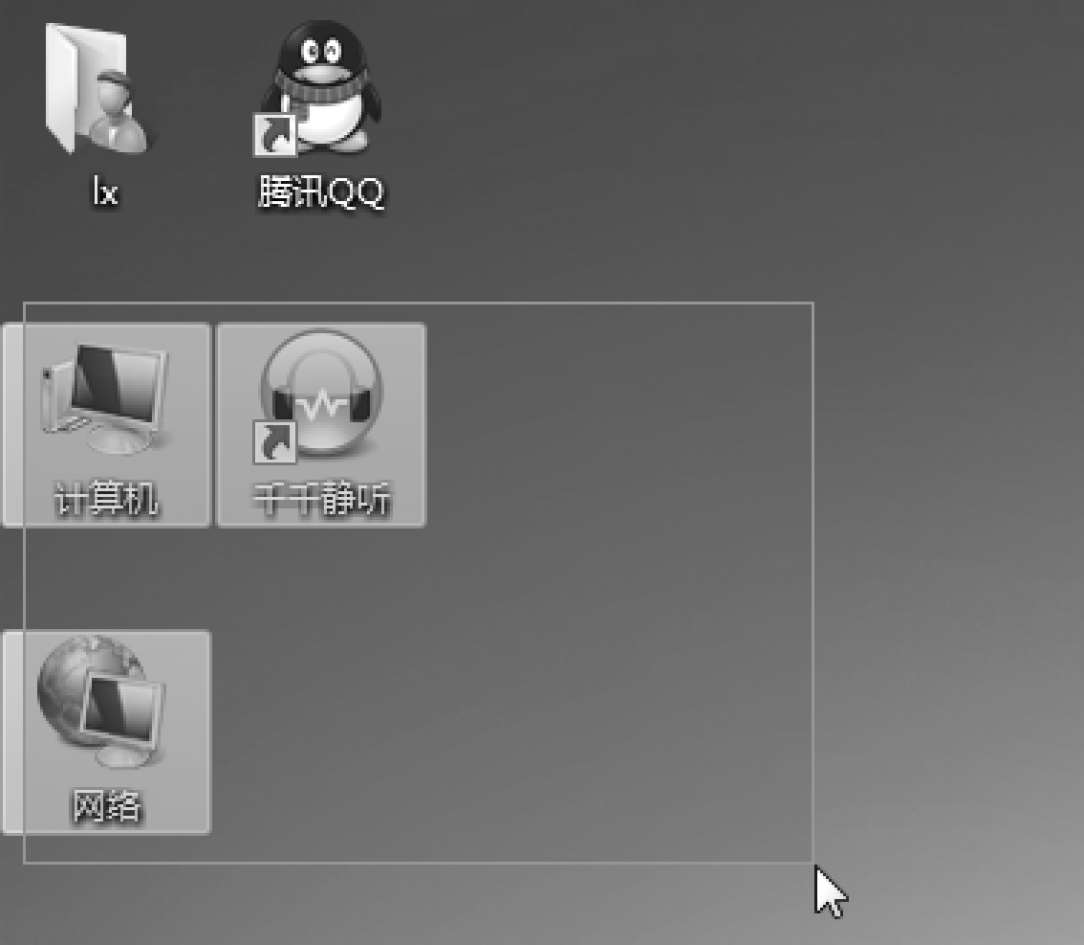 此外,拖动鼠标还可用于框选多个对象,方法为:按住鼠标左键不放并拖动,此时会形成一个以鼠标起点和终点为对角线的方框,松开鼠标左键后,方框内的对象将被全部选中,如图1.31所示。
