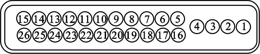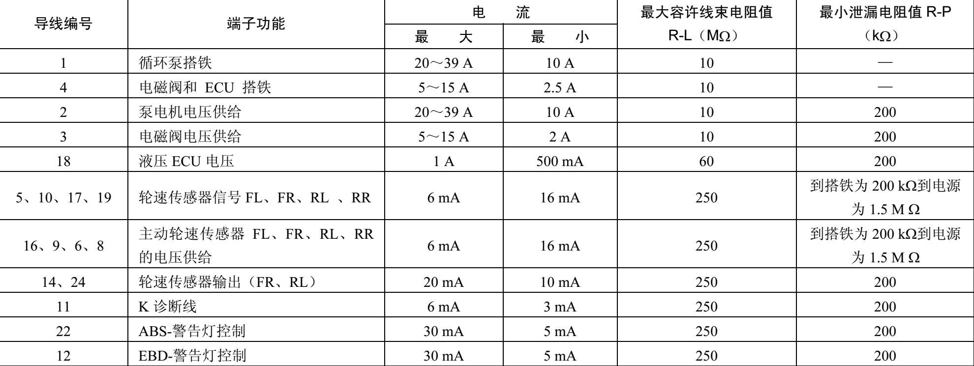 防抱死制动系统电控单元连接器如图1-5所示,其端子功能和检测数据如表1-7所示。