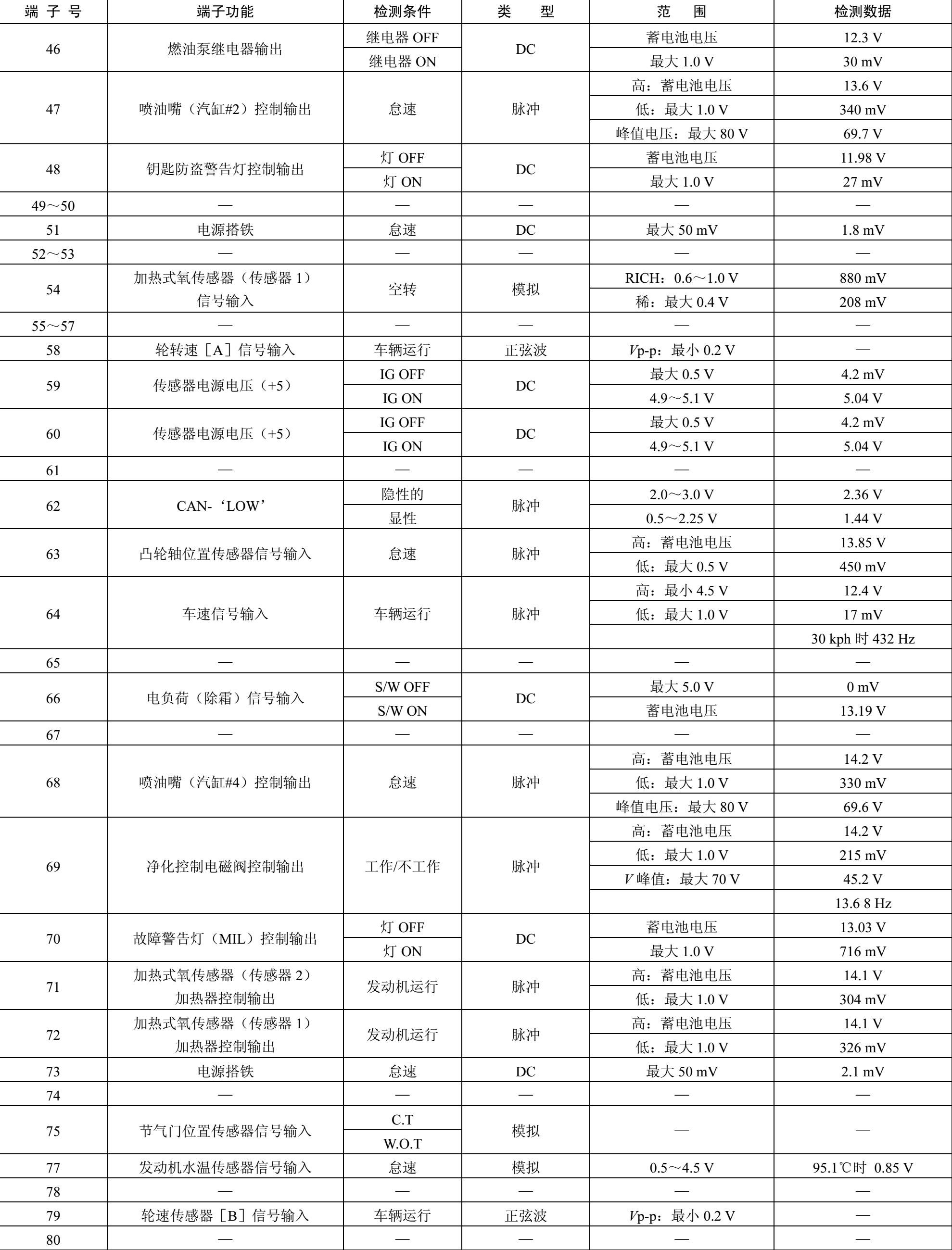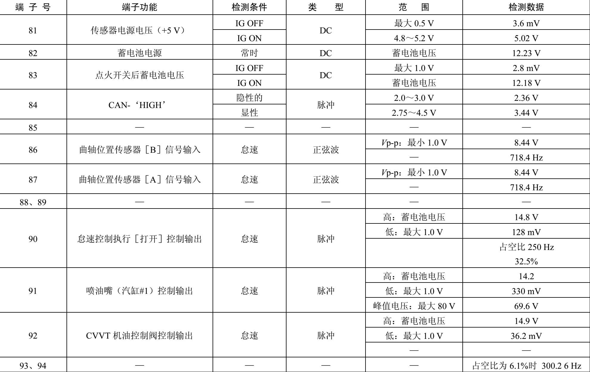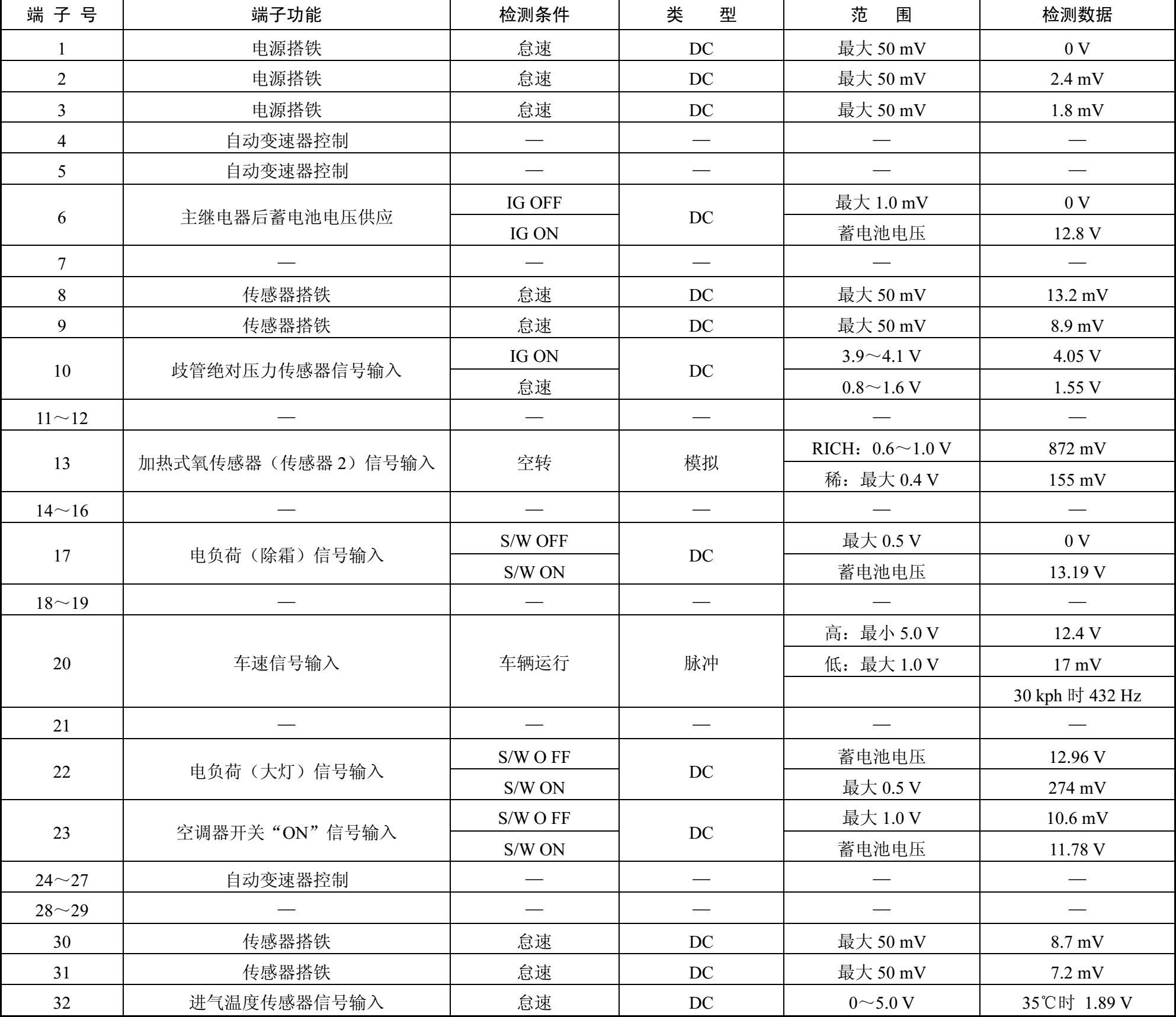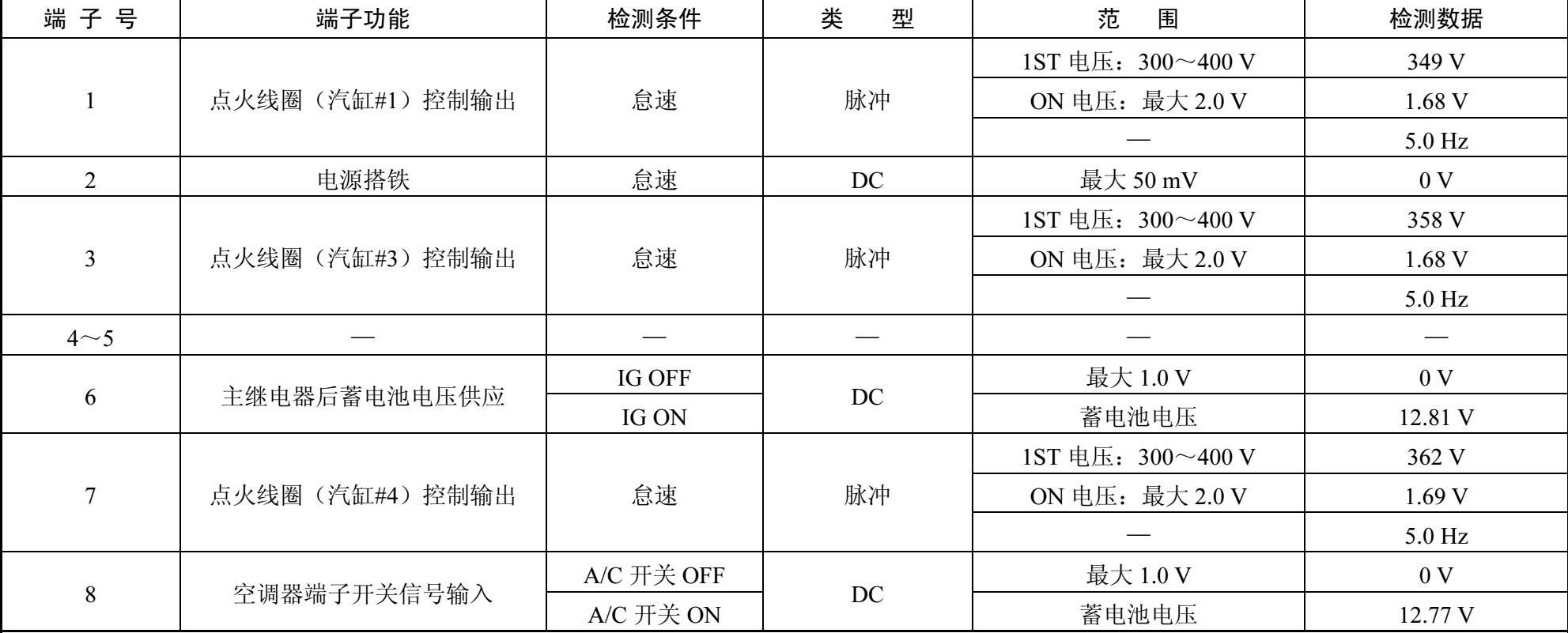 ECM线束连接器端子功能和检测数据如表1-27所示。