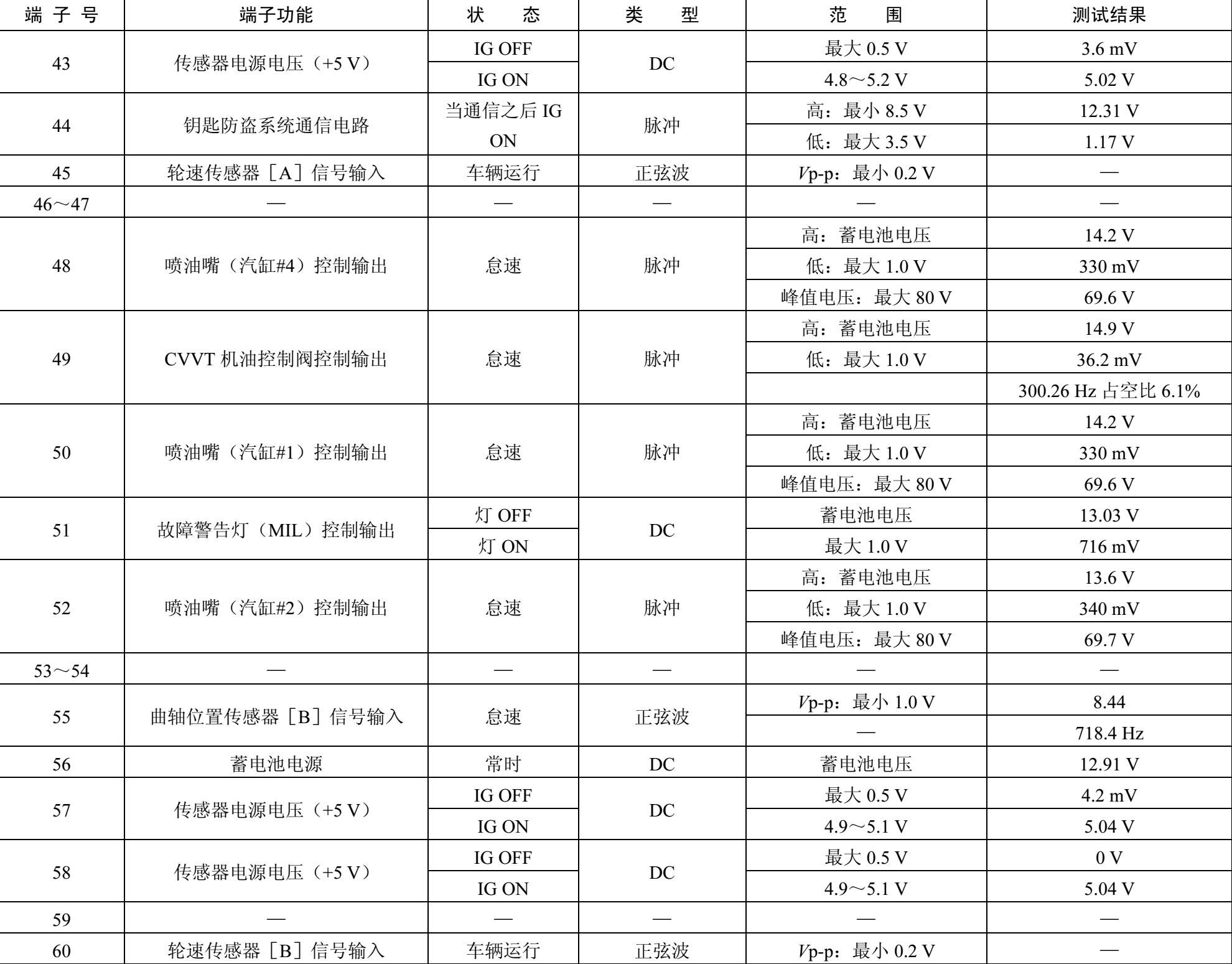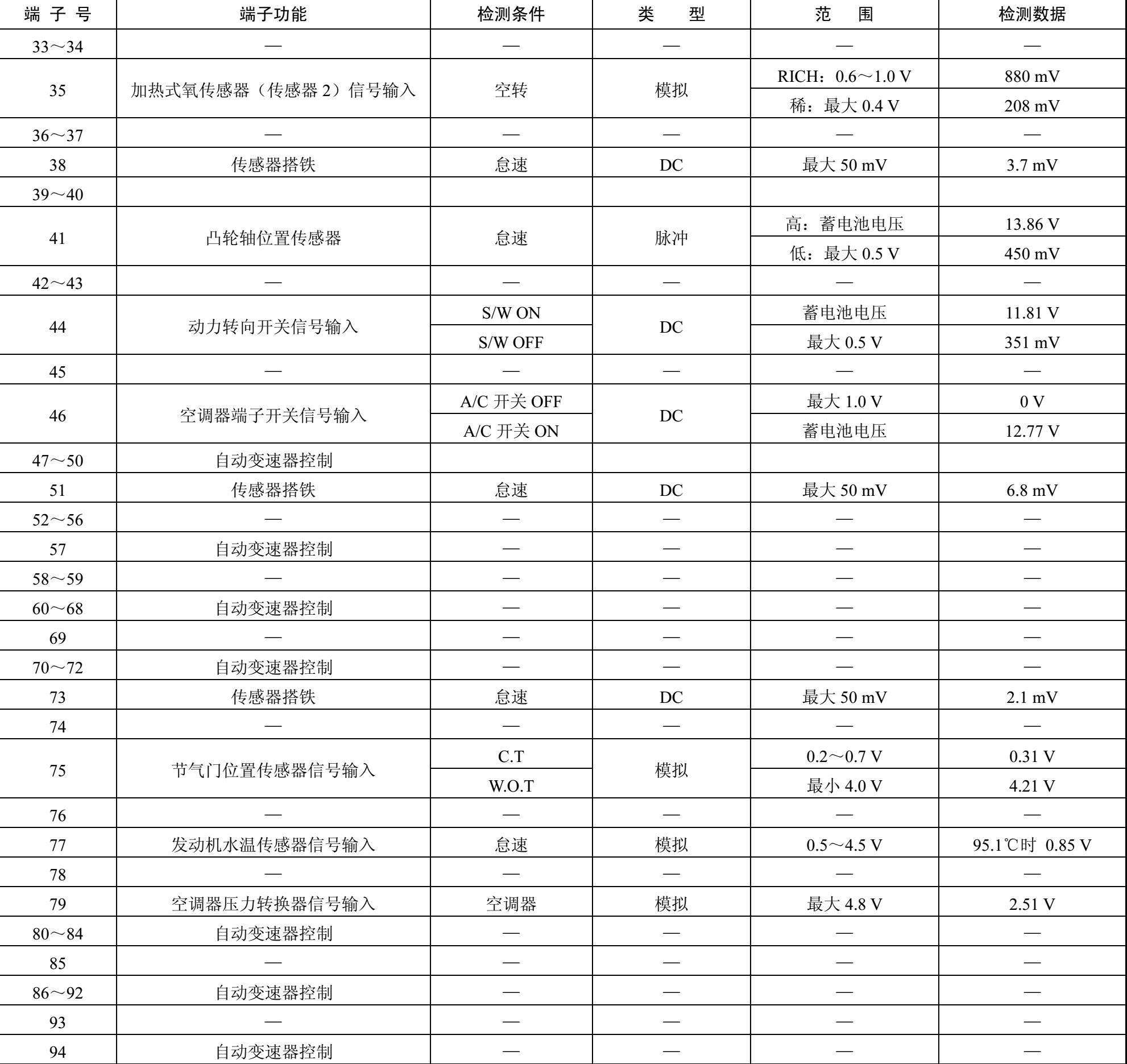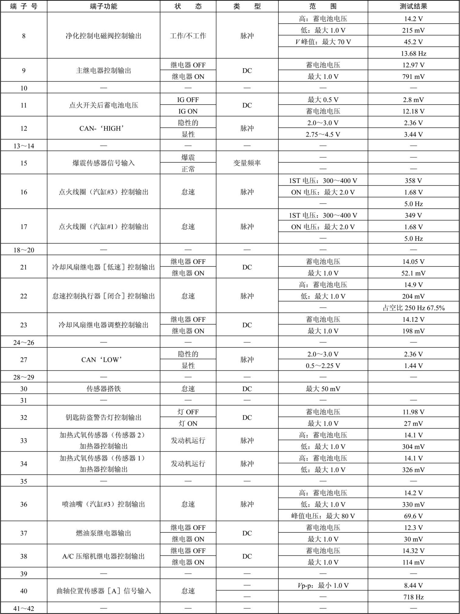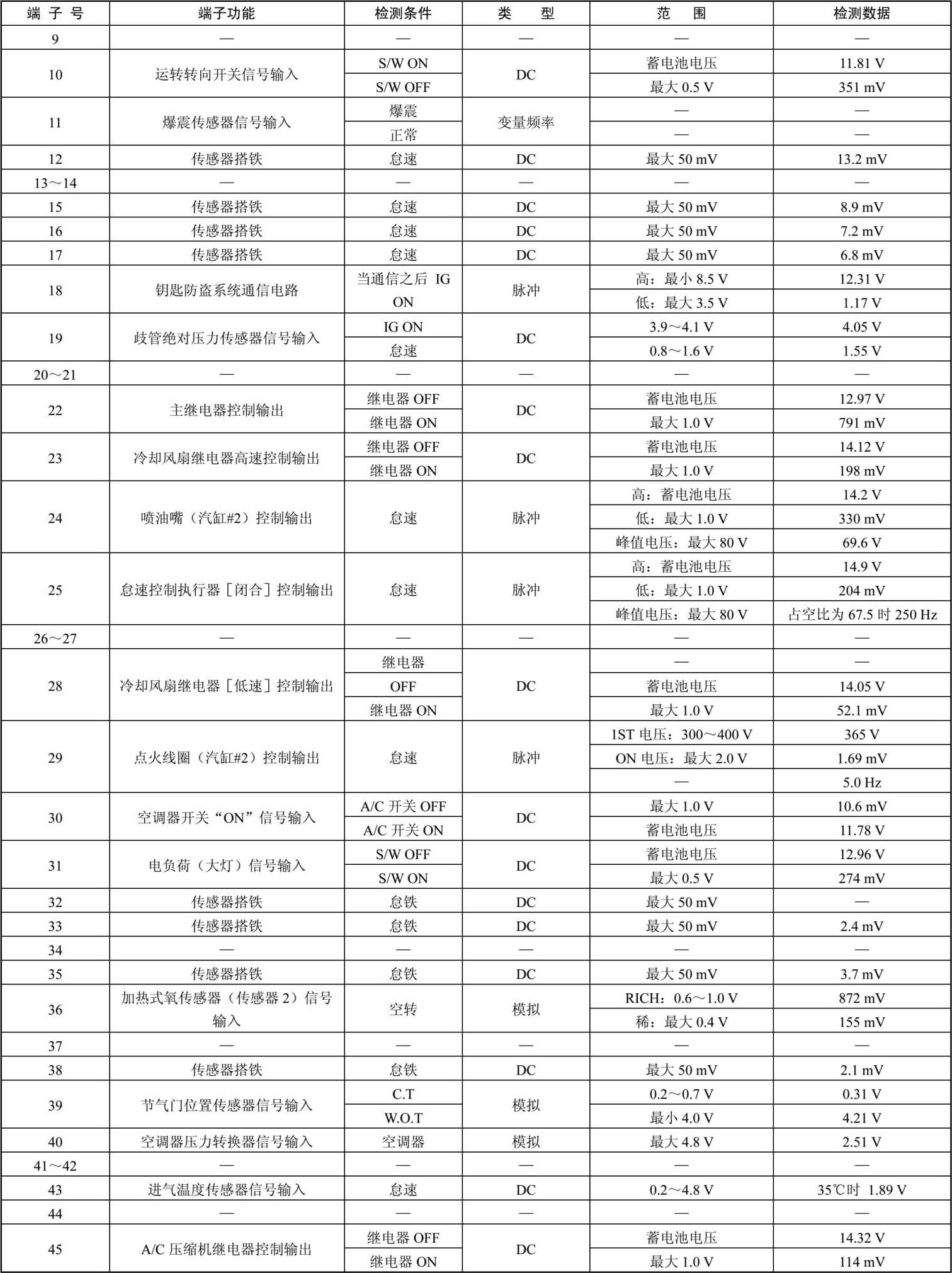 ECM线束连接器端子功能和检测数据如表1-27所示。