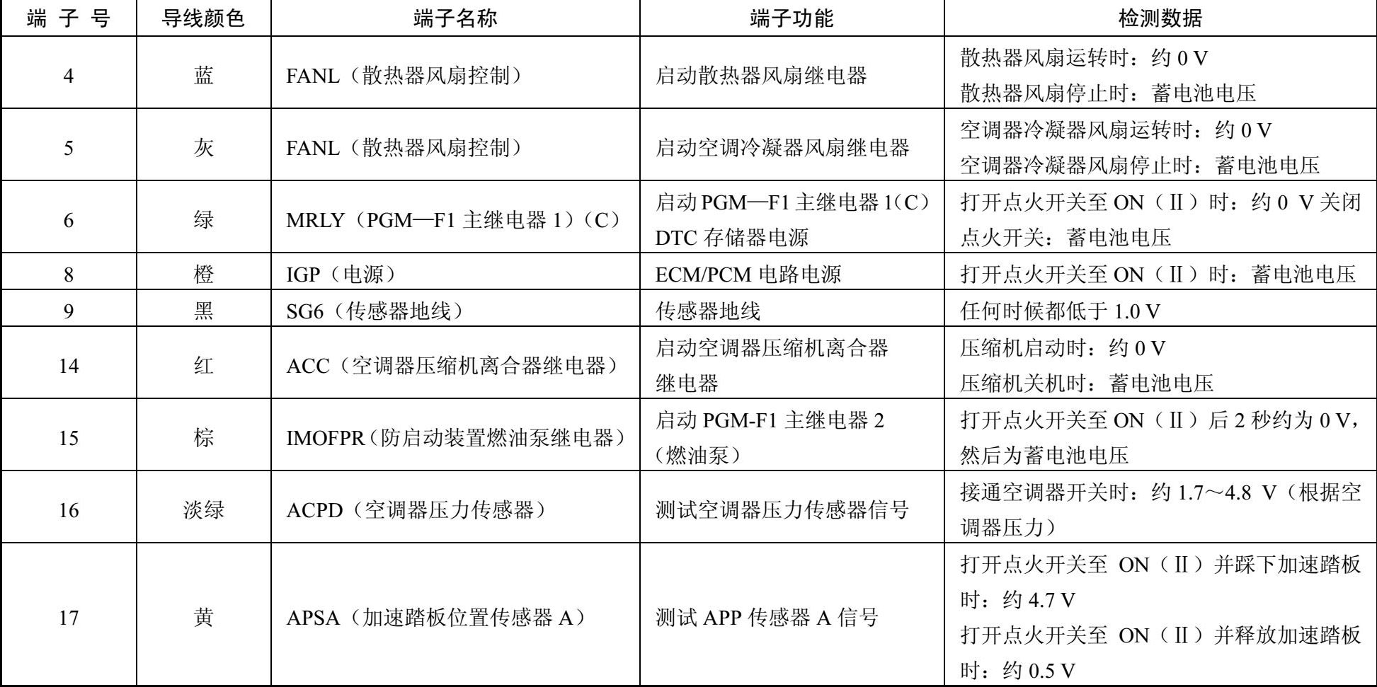 表2-3 ECM/PCM电控单元连接器C(○)(44 P)端子功能和检测数据
