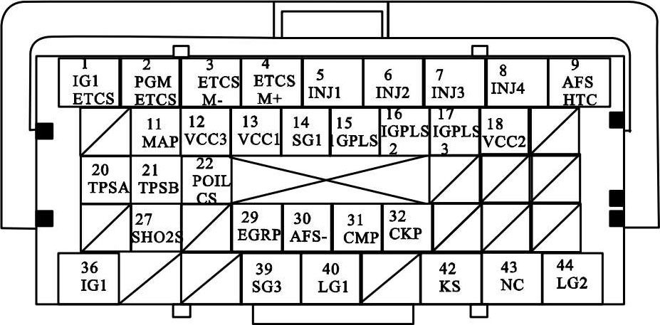 图2-1 ECM/PCM电控单元连接器A(□)(44 P)