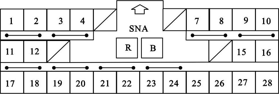 SRS装置输入和输出连接器B(28 P)如图2-6所示,其连接器端子功能如表2-6所示。