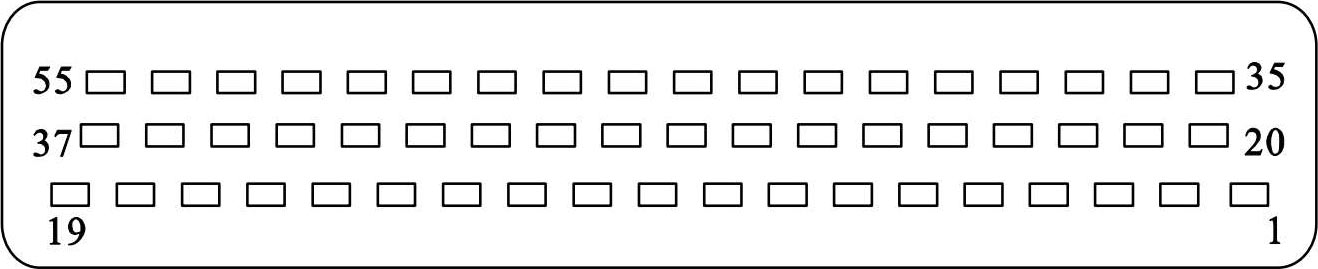 发动机系统电控单元连接器如图1-1所示,其端子功能和检测数据如表1-1所示。