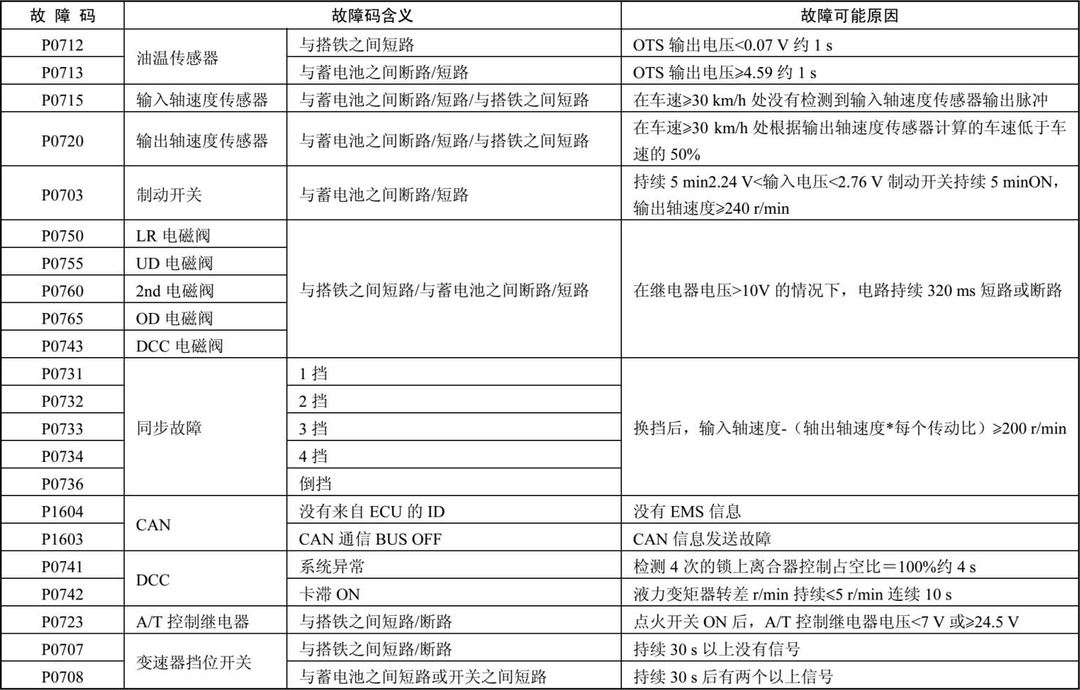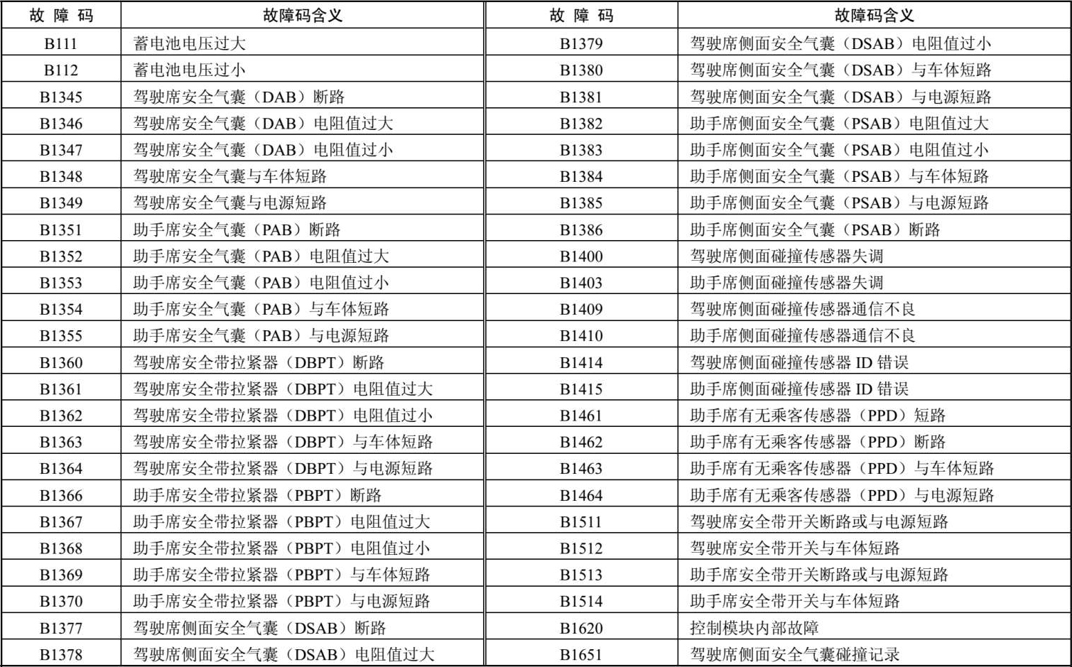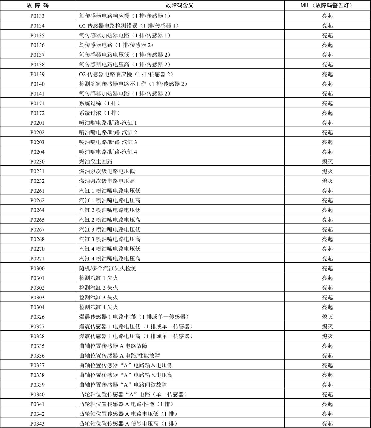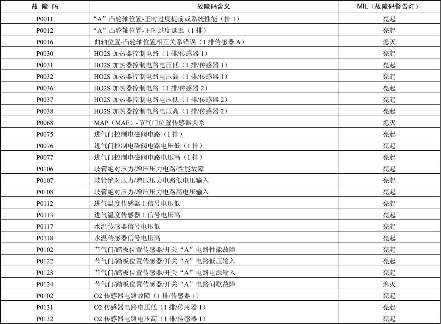 发动机控制系统(1.6 L)故障码如表1-6所示。