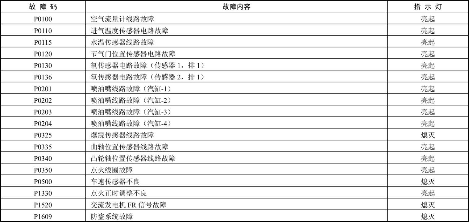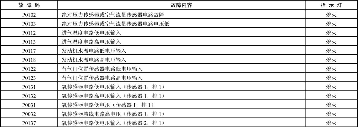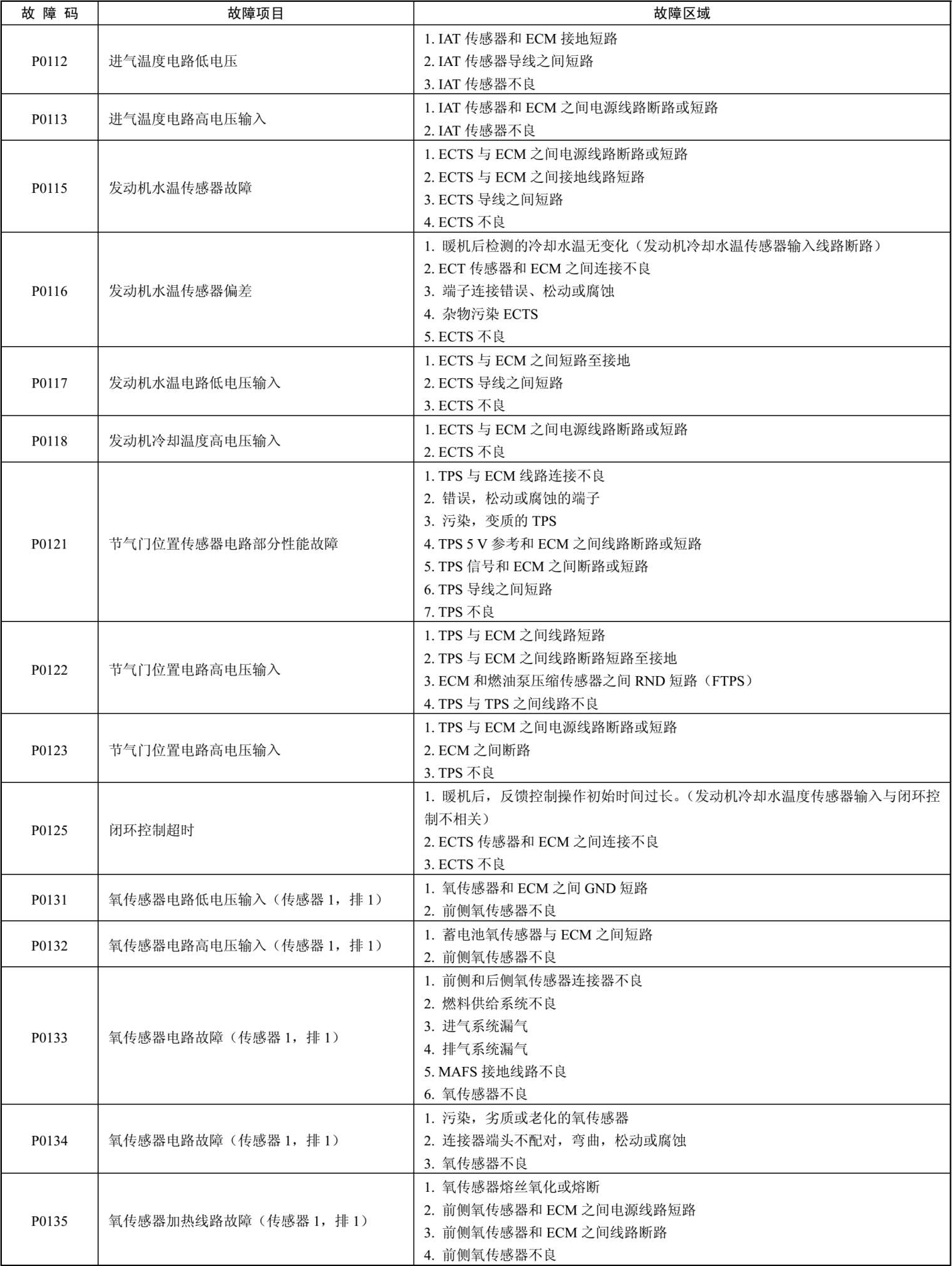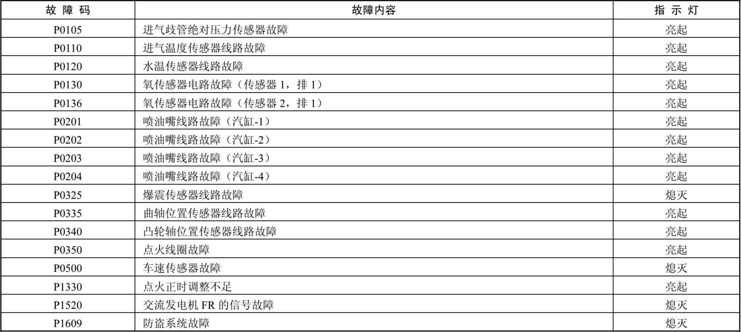 发动机控制系统2.0LEOBD直列4缸故障码如表1-12所示。