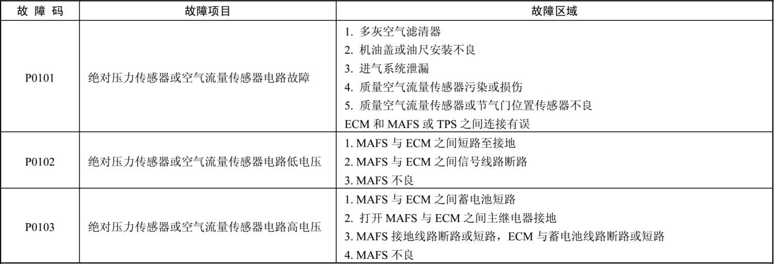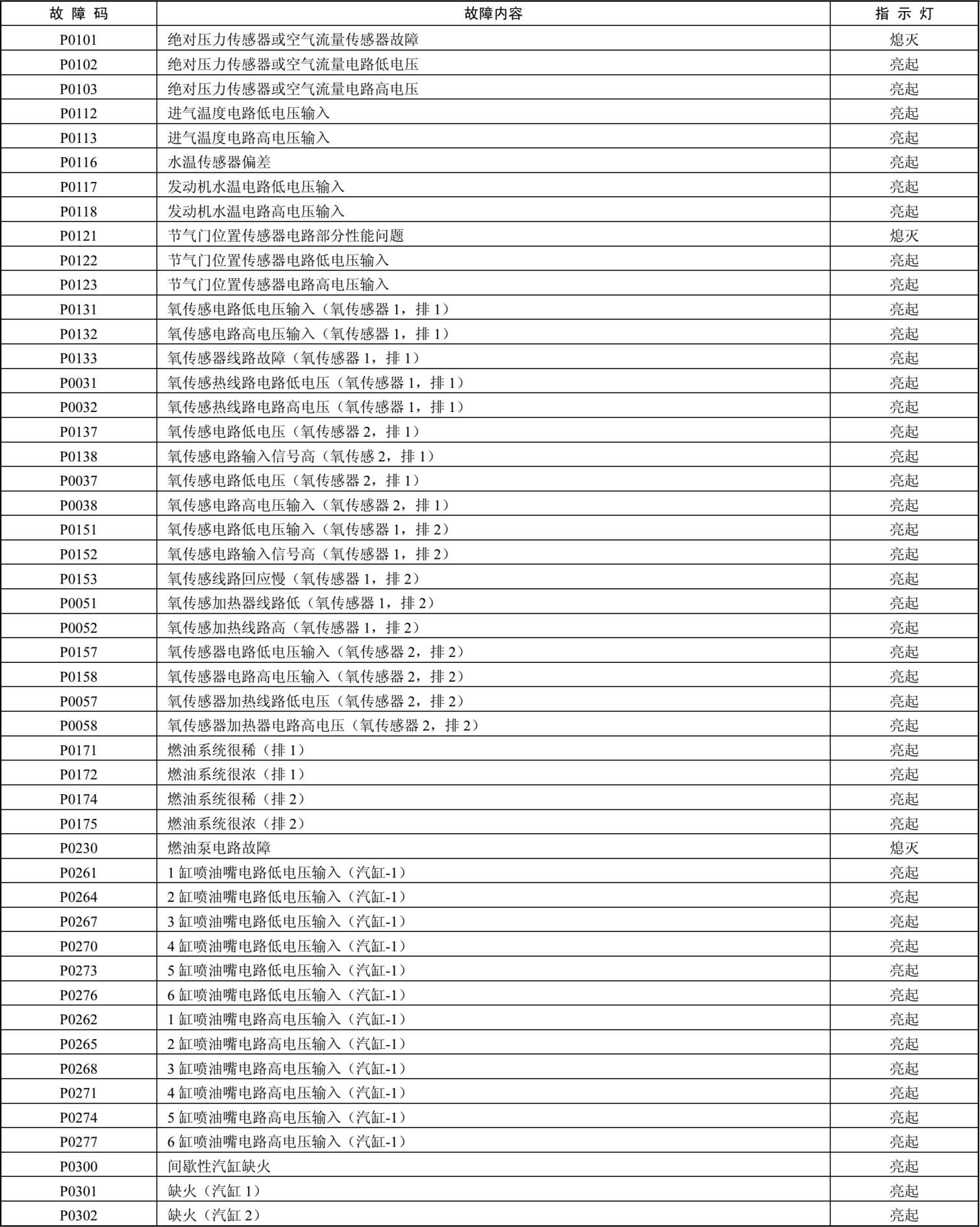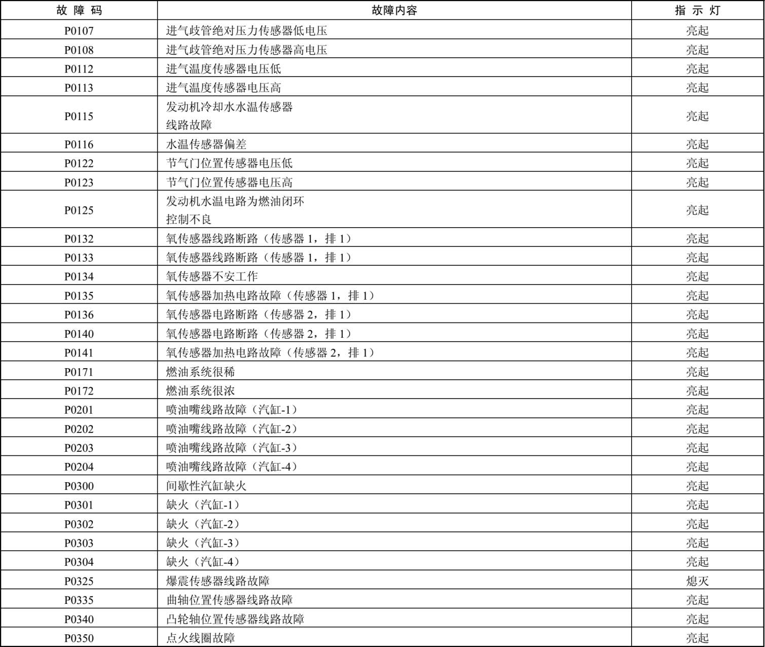 发动机控制系统2.0LEOBD直列4缸故障码如表1-12所示。