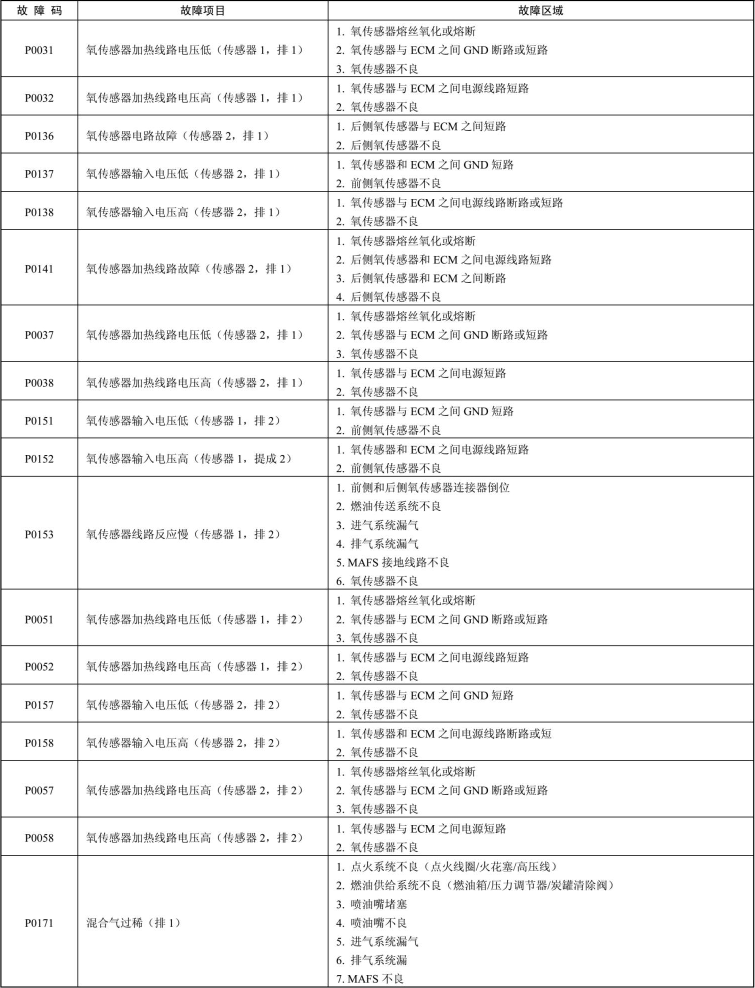 表1-12 发动机控制系统2.0LEOBD直列4缸故障码