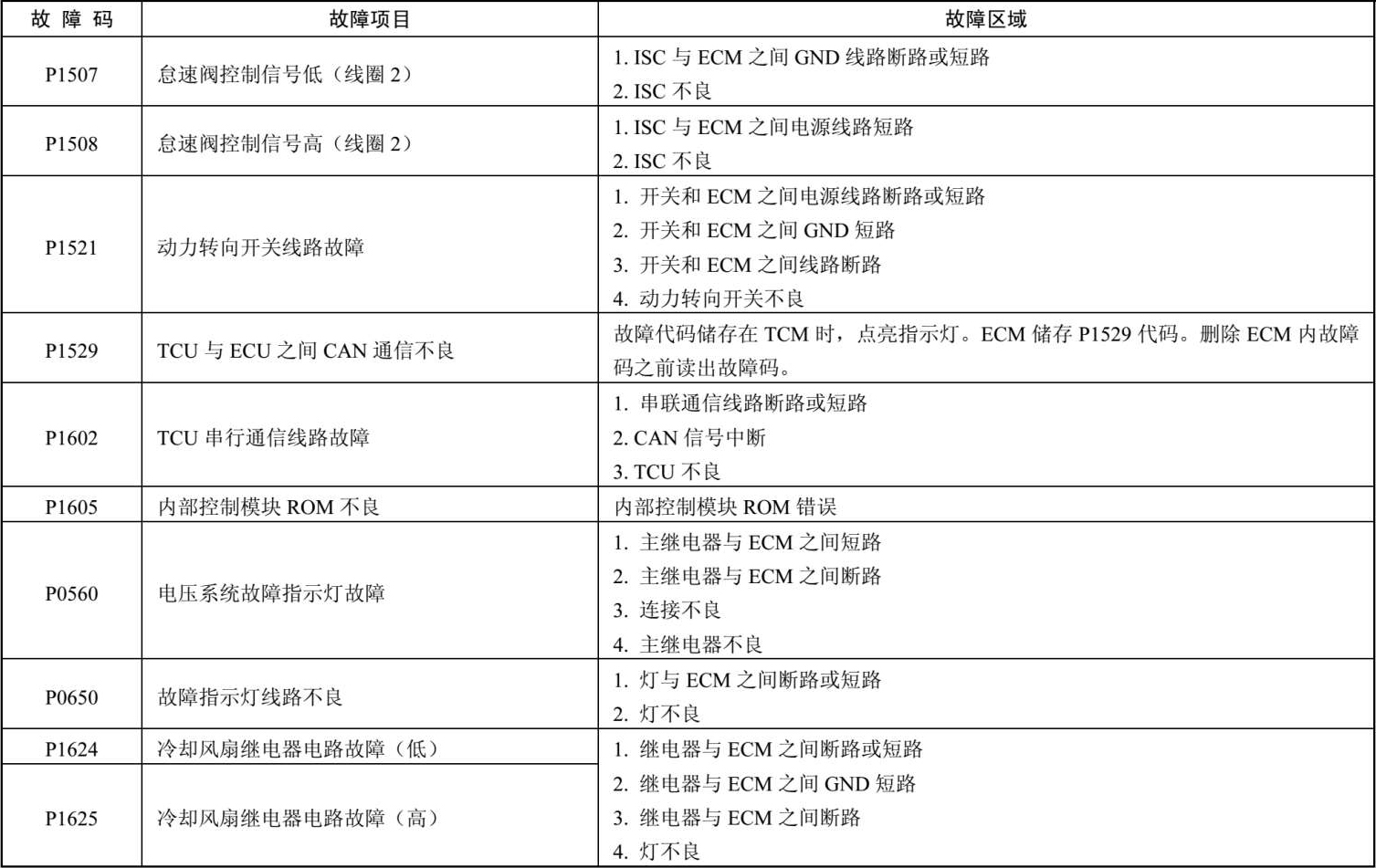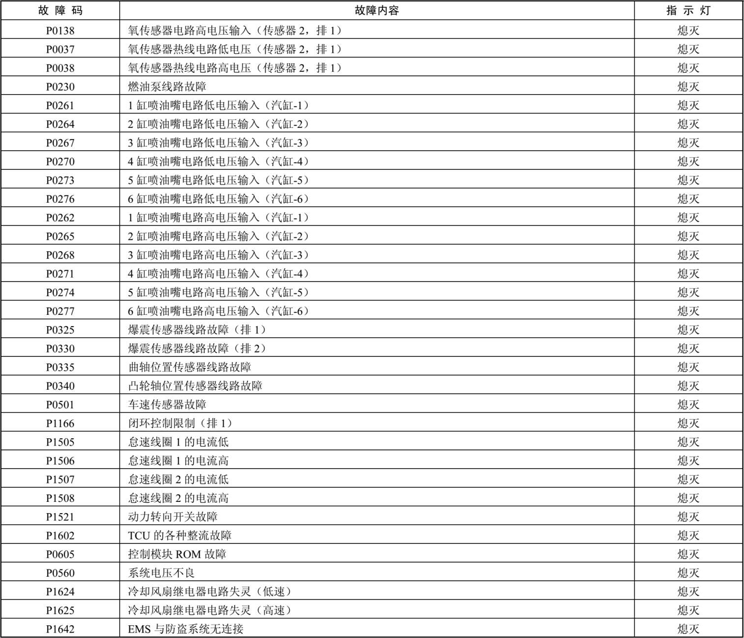 发动机控制系统2.7L V6—NON EOBD故障码如表1-16所示。