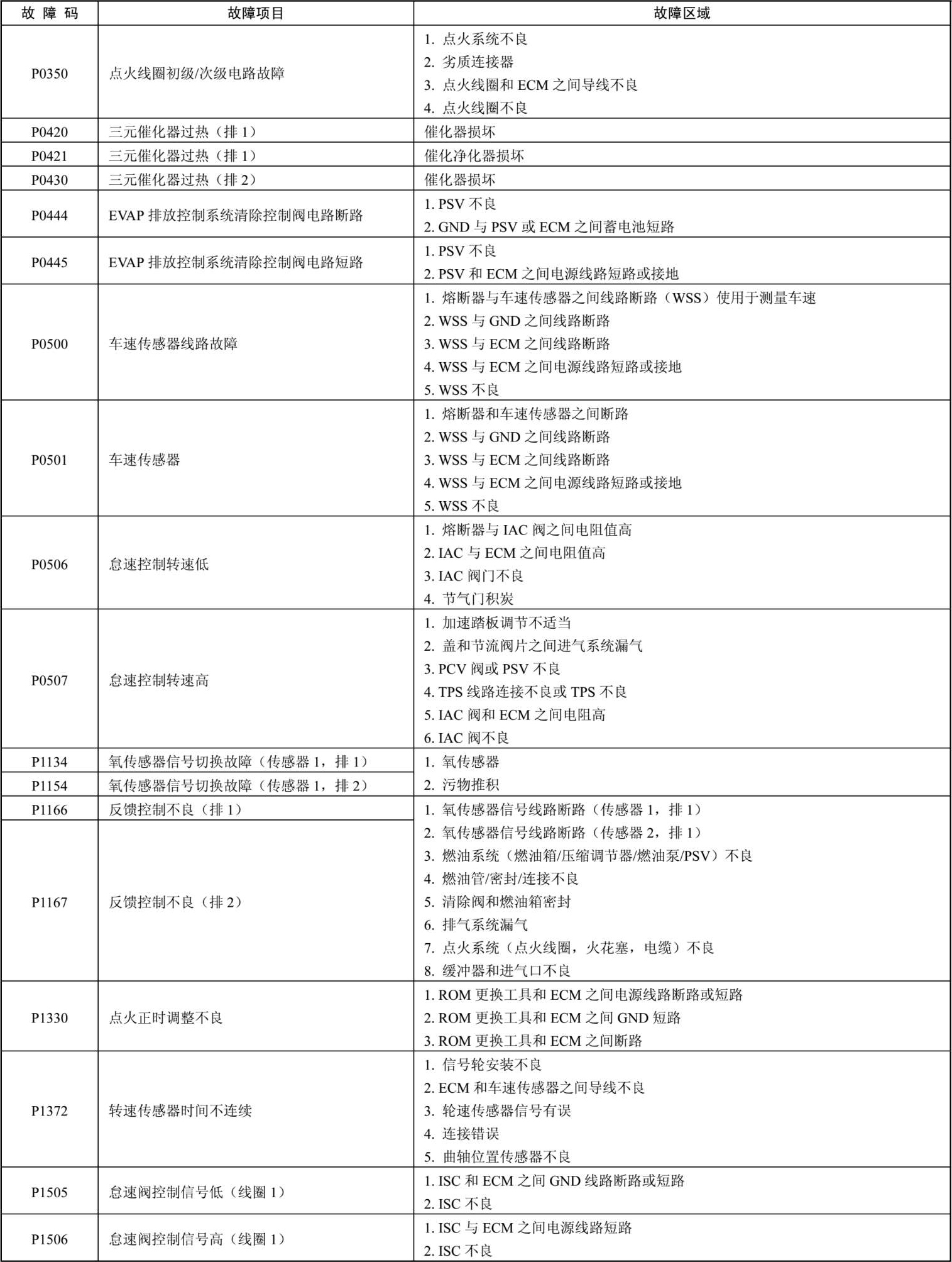 发动机控制系统2.0L4—NON EDBD故障码如表1-13所示。