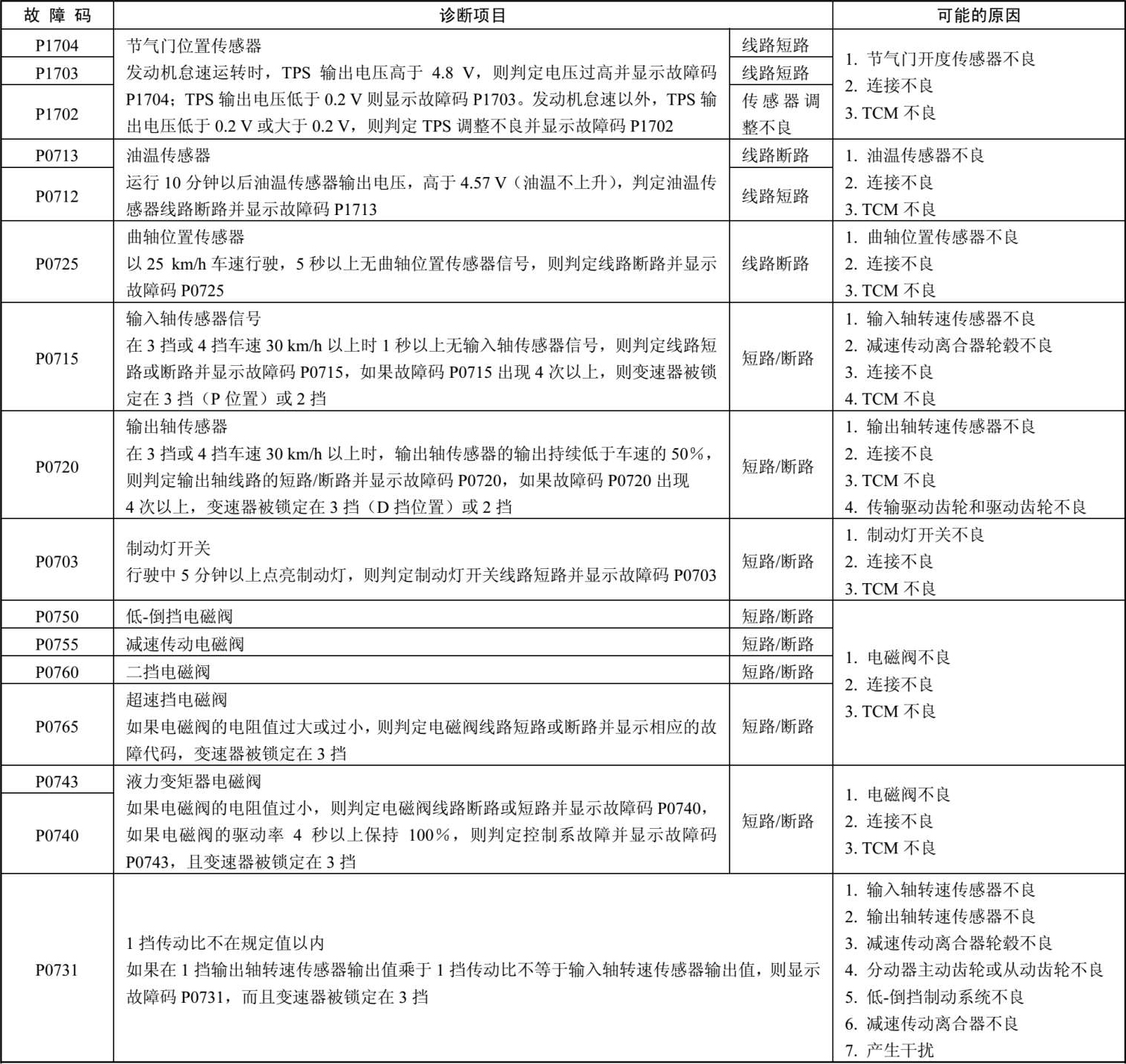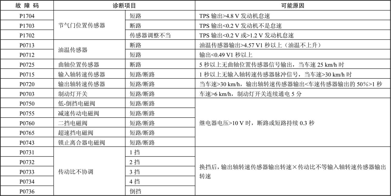 F4A42—2型自动变速器系统故障码诊断检测如表1-19所示。