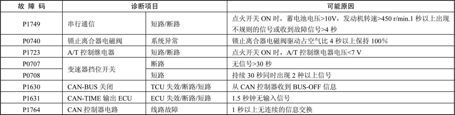 表1-18 F4A42—2型自动变速器系统故障诊断码