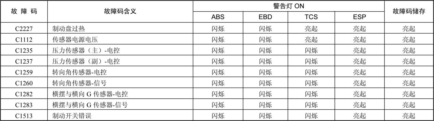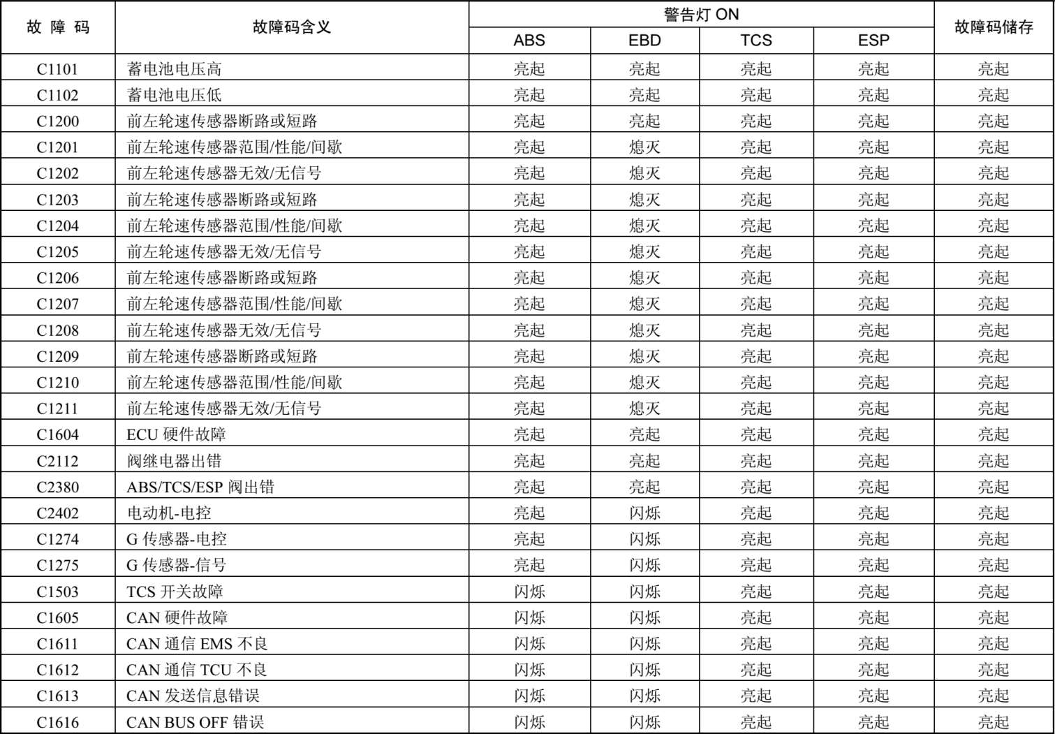 电控稳定程序系统(ESP)故障码如表1-28所示。