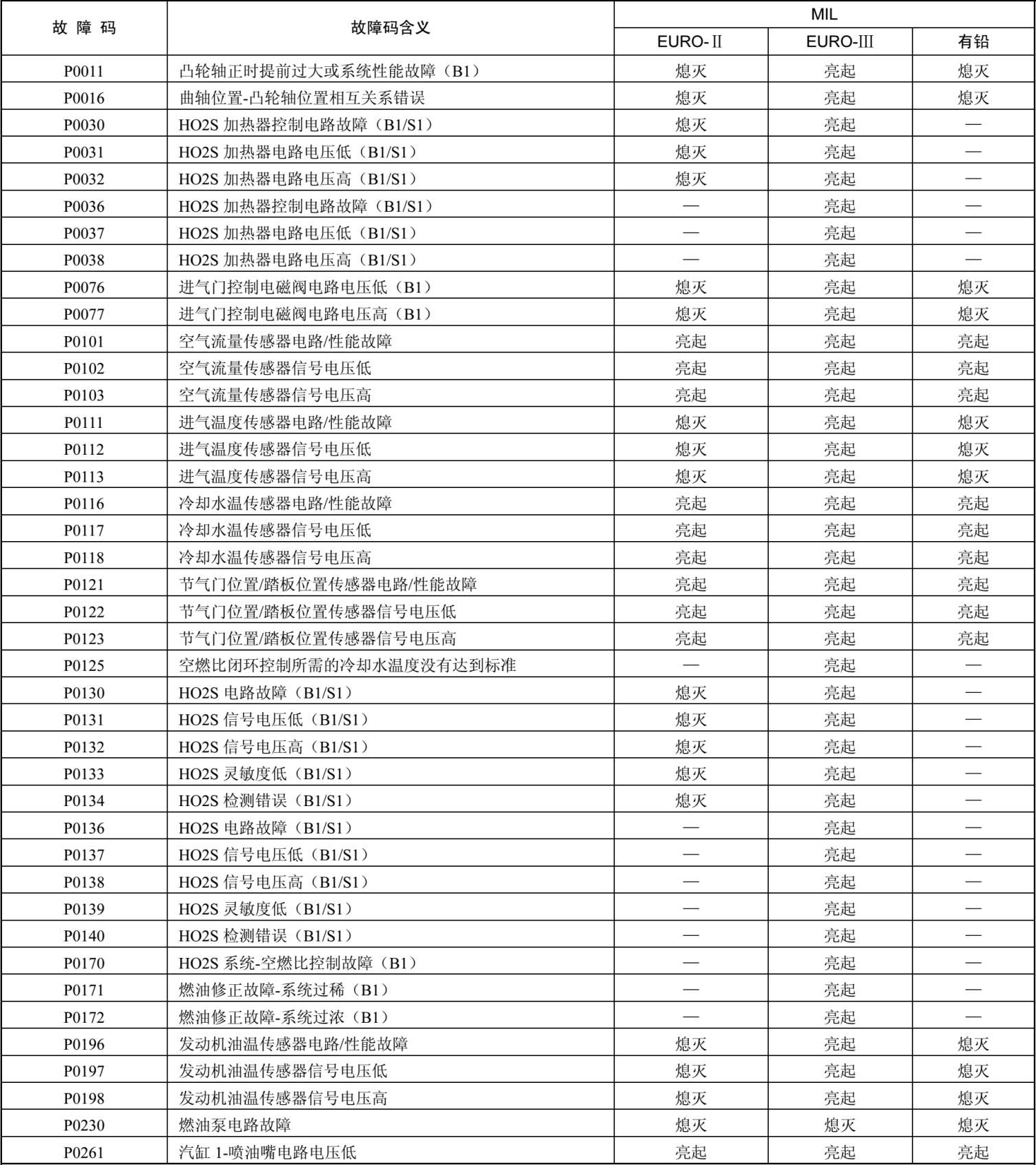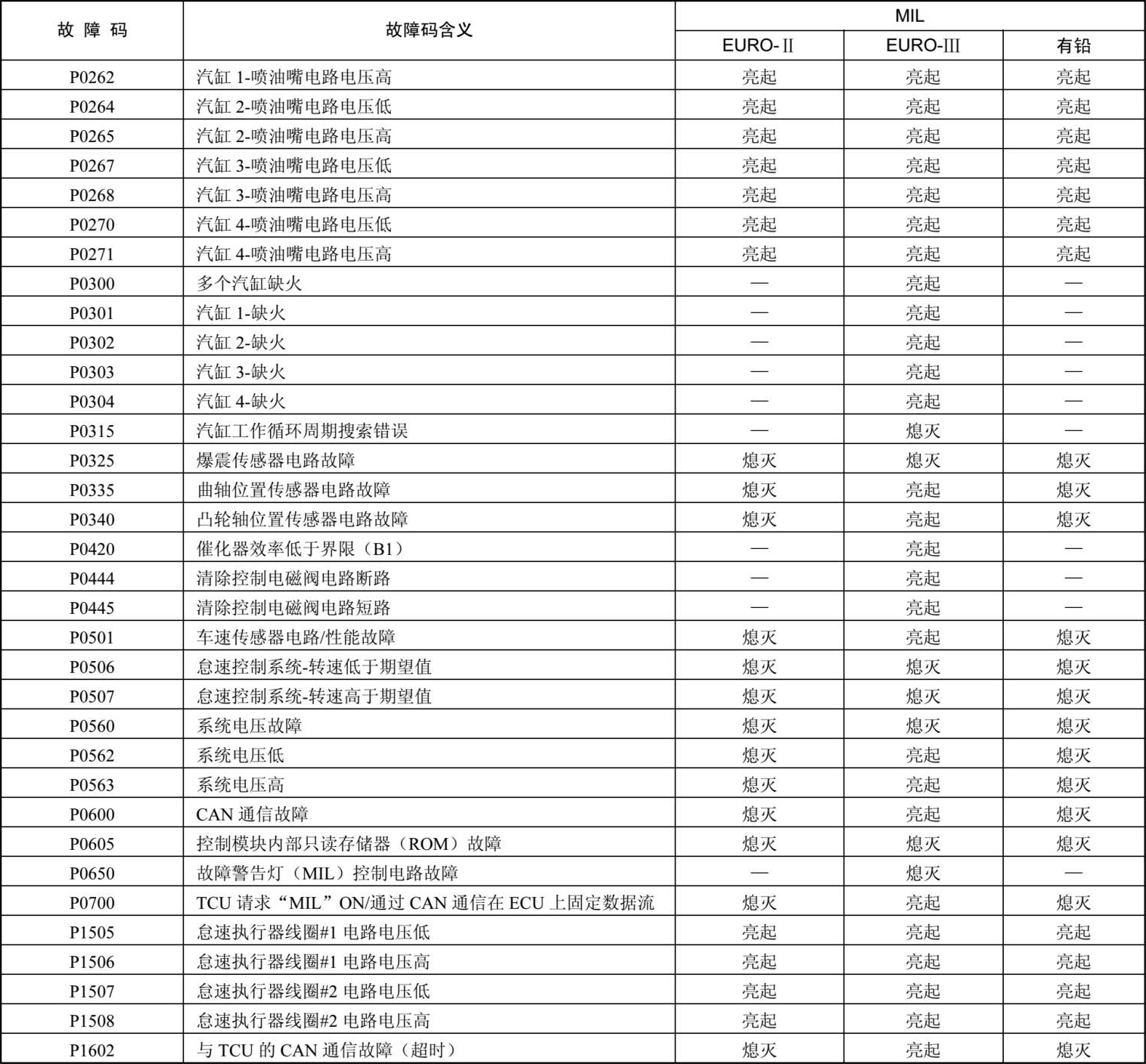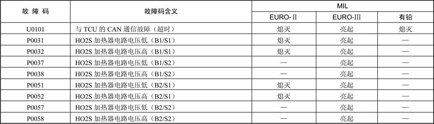 说明:仅为TCM DTS时,故障指示灯(MIL)将亮或闪烁。如果MIL亮或闪烁,检查燃油或排放系统。