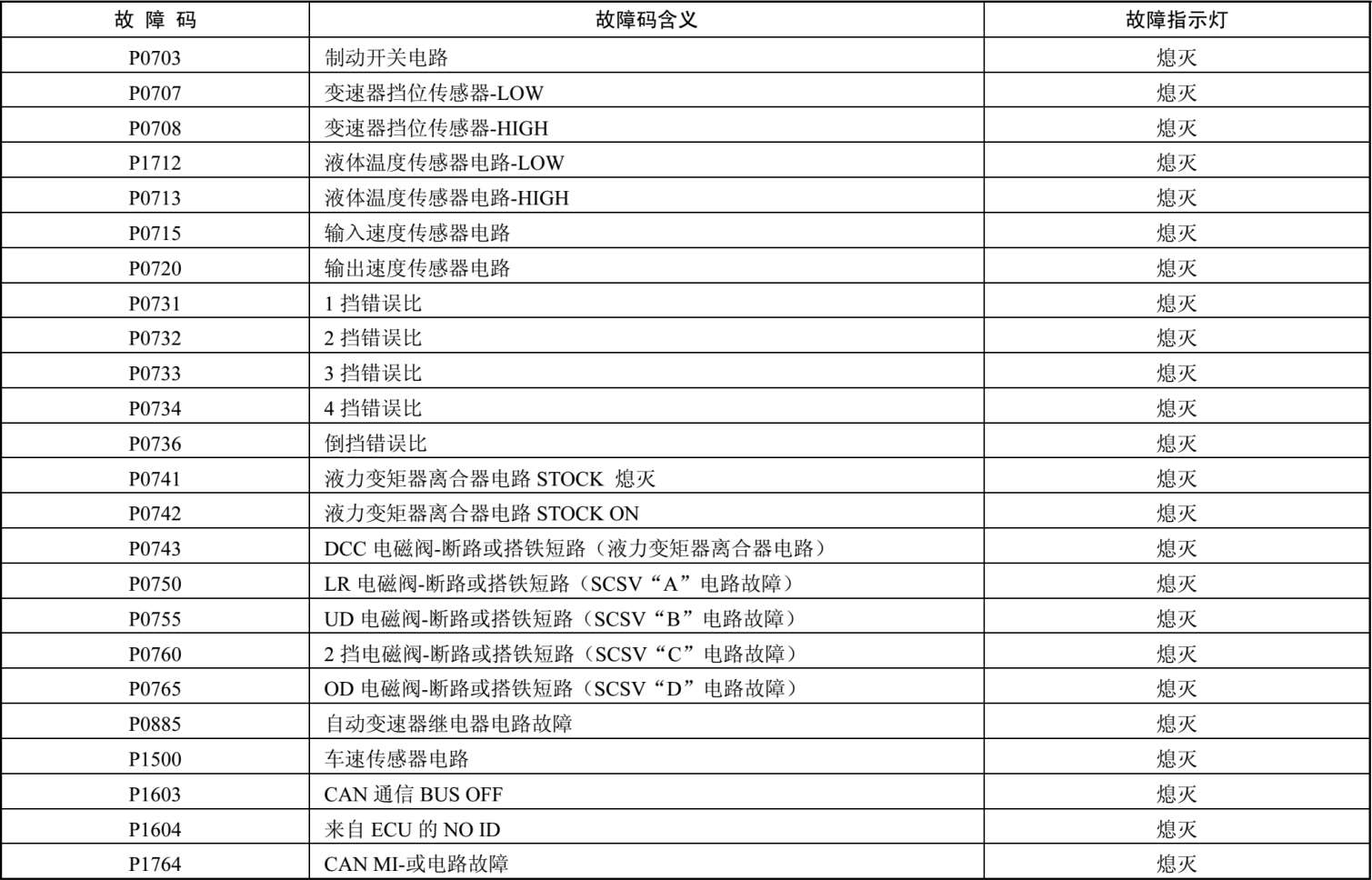 防抱死制动系统(ABS)故障码如表1-27所示。