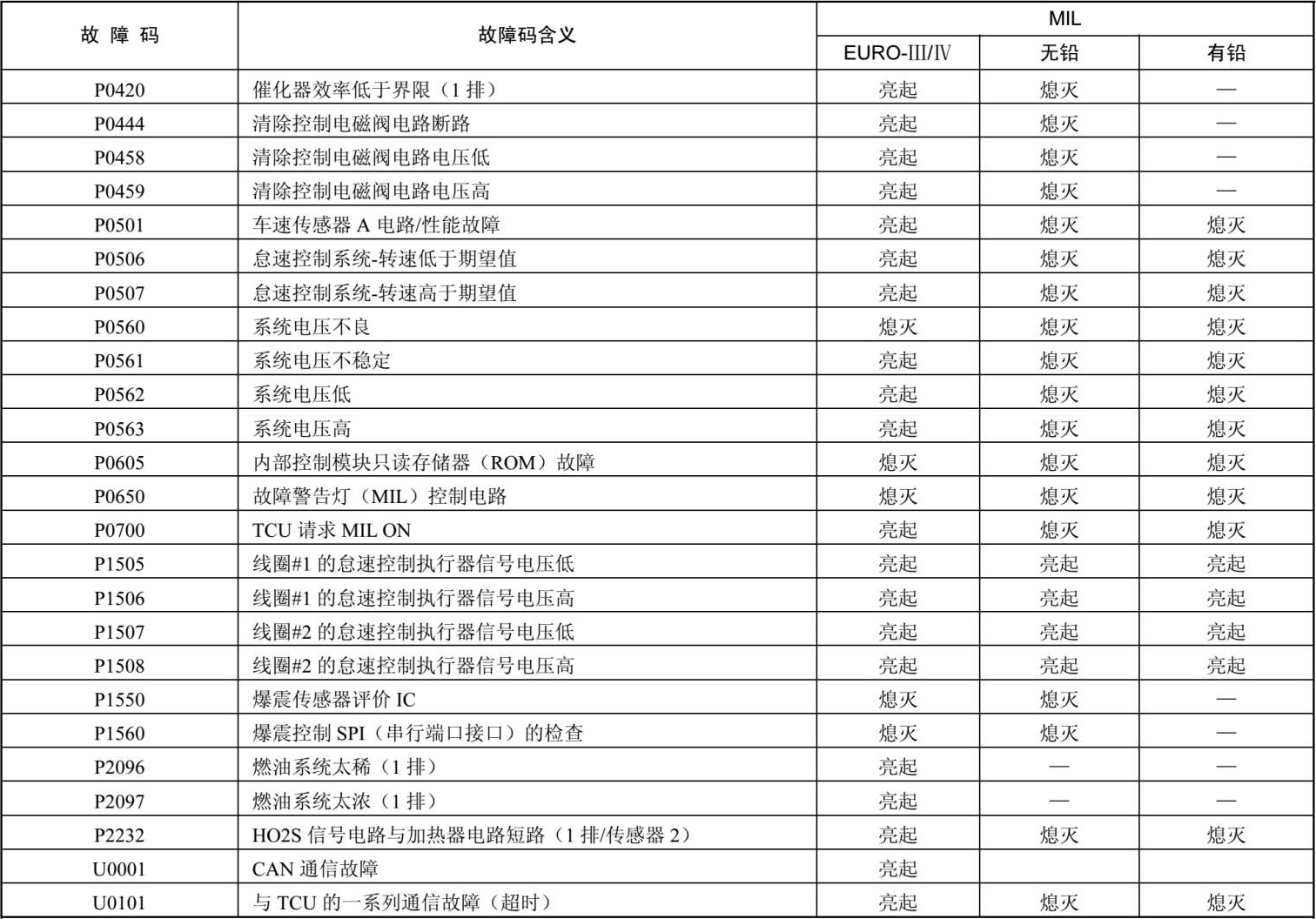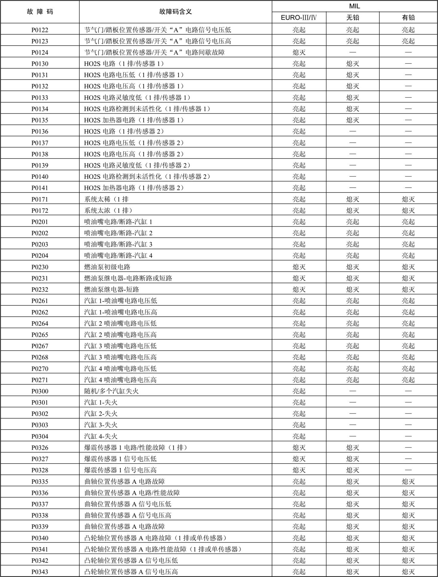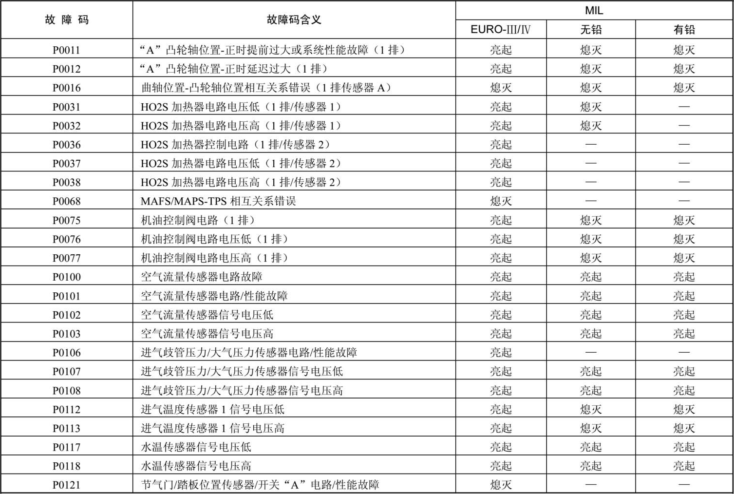1.4DOHC/1.6CVVT型发动机控制系统故障码如表1-31所示。
