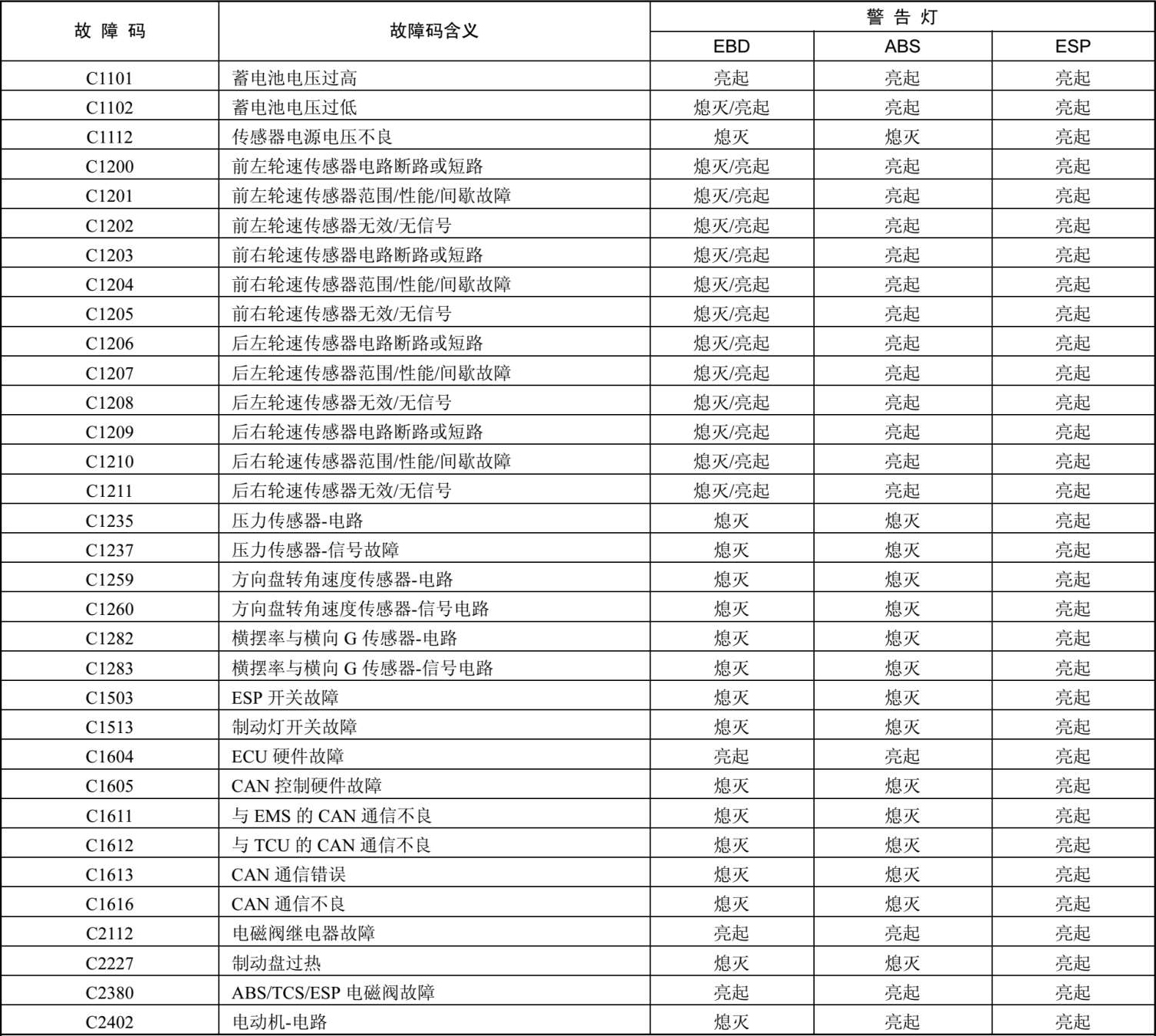 防抱死控制系统(ABS)故障码如表1-33所示。