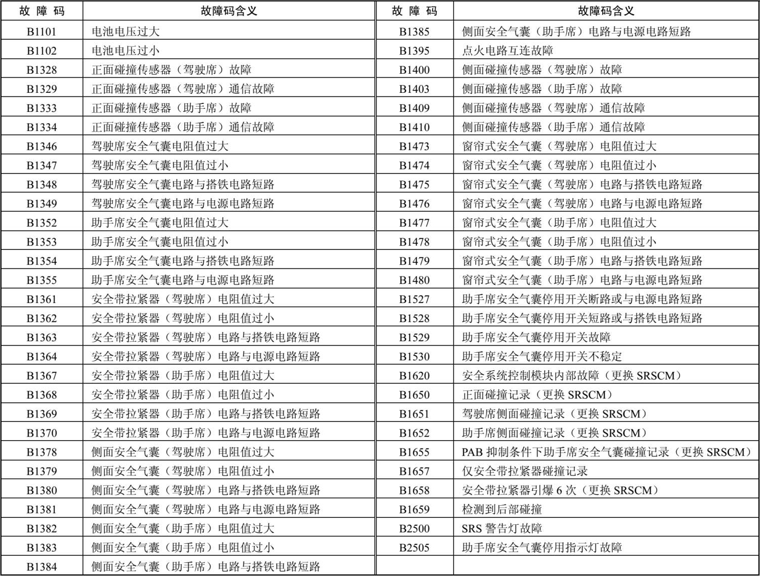表1-37 安全气囊控制系统故障码 Pw6iawZE353dEA/aVhUE2k/XqJQ7tC+d9MgCe7+HauNtJ/87d5zjHx6iFqfFde5e