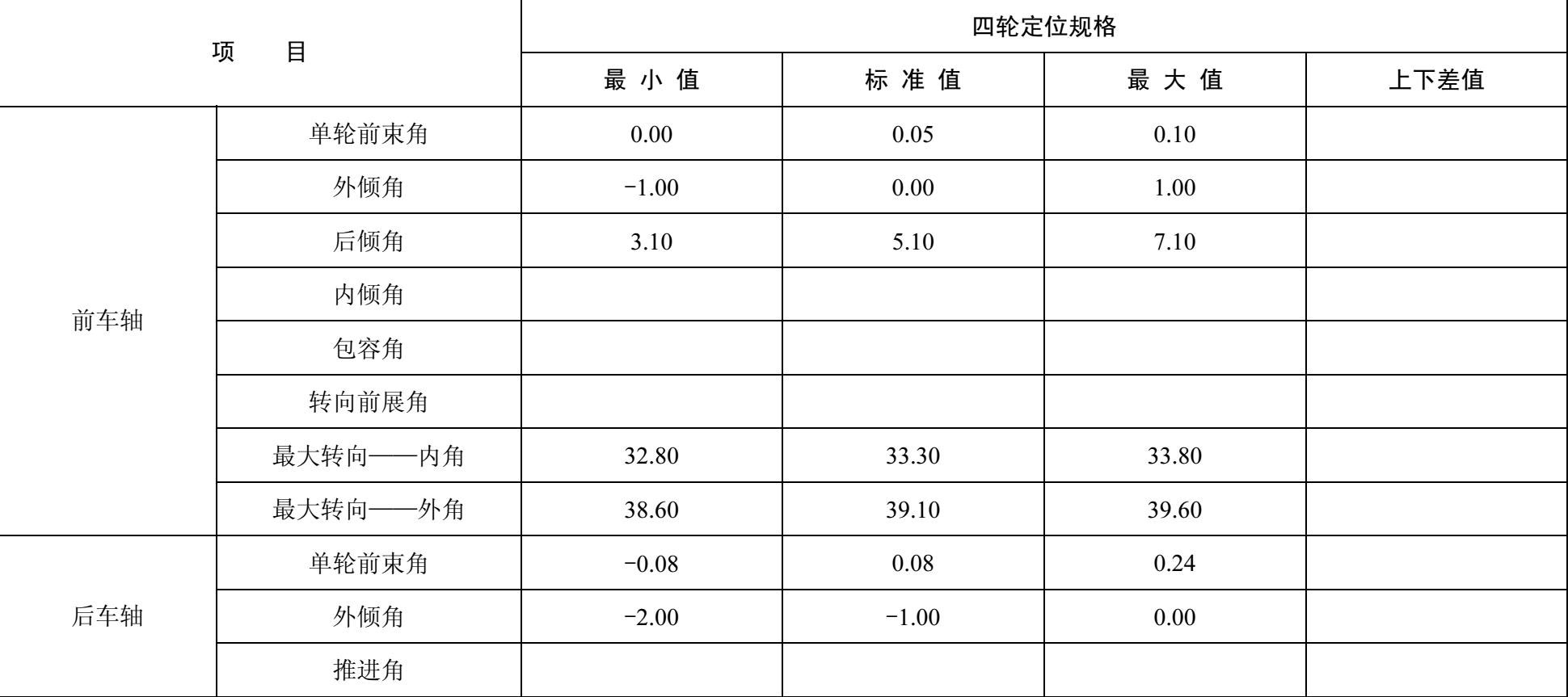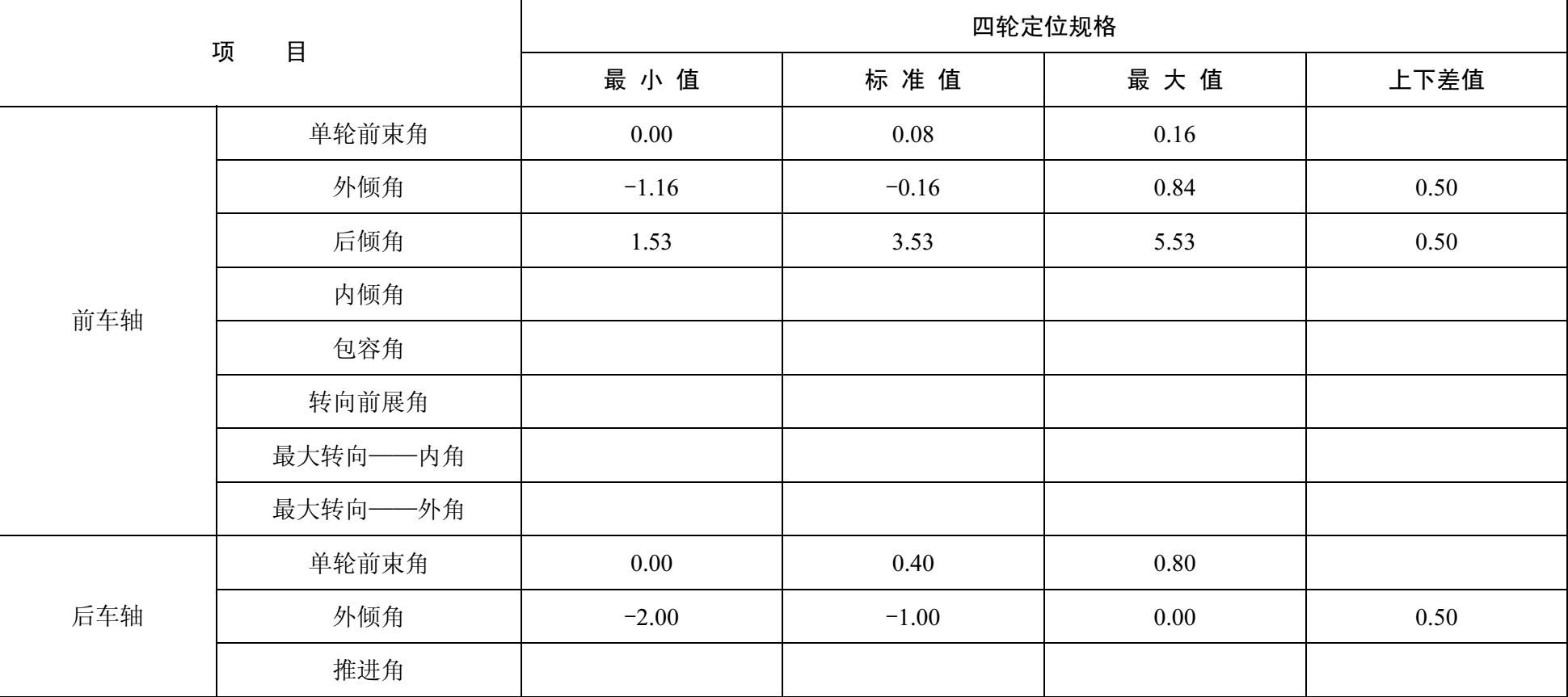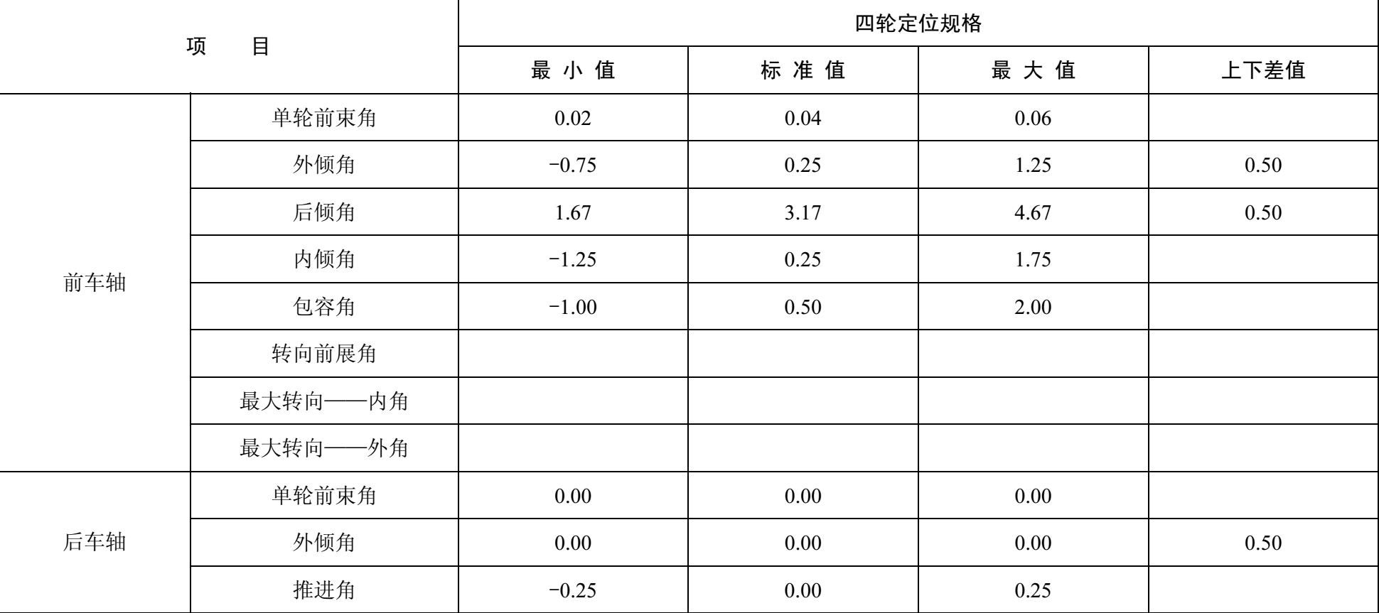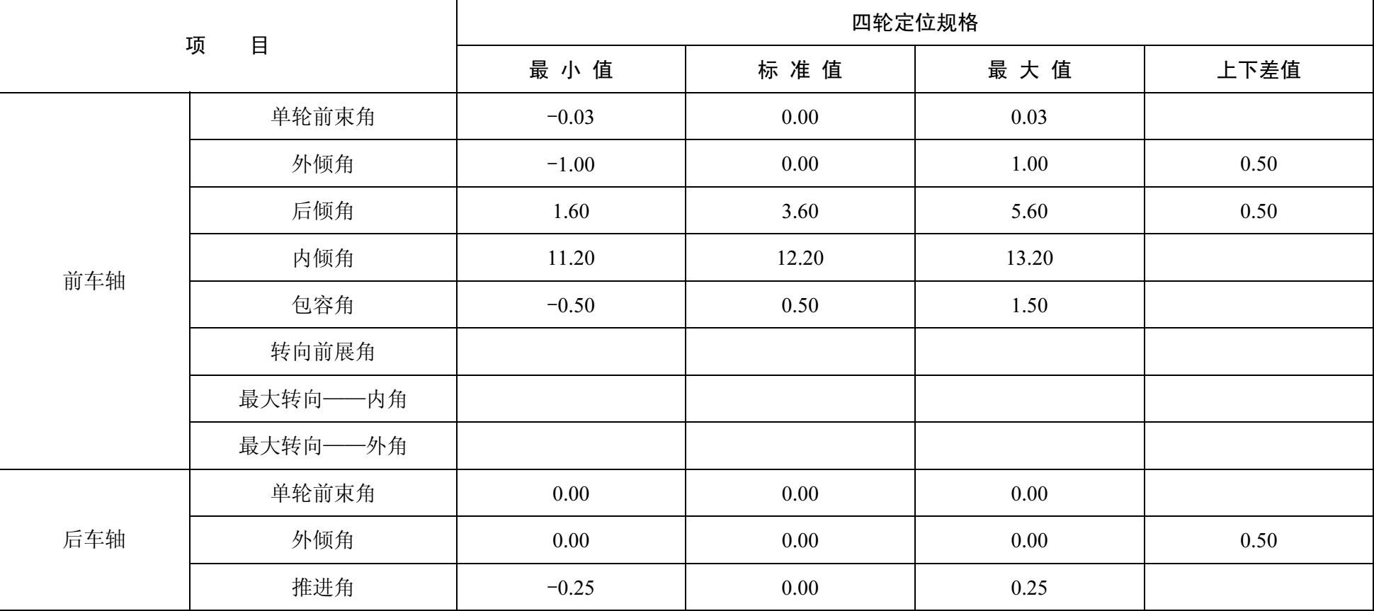 长安铃木雨燕185/60R15型汽车四轮定位数据如表1-159所示。