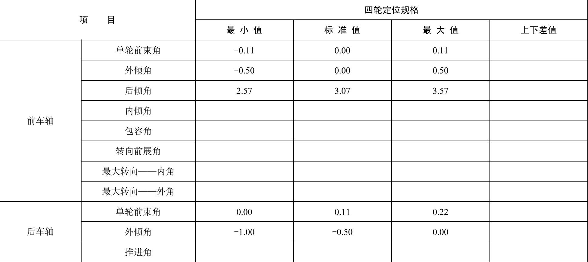 北京现代i30型汽车四轮定位数据如表2-1所示。