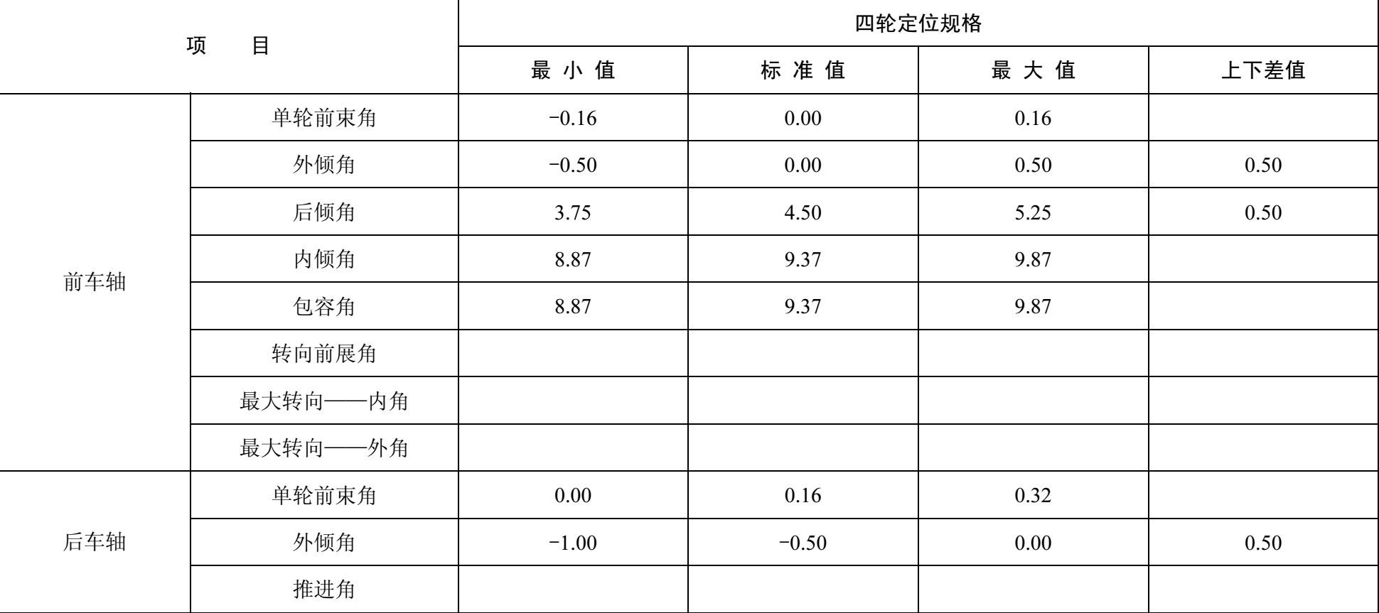 北京现代特拉杰Trajet型汽车四轮定位数据如表2-11所示。