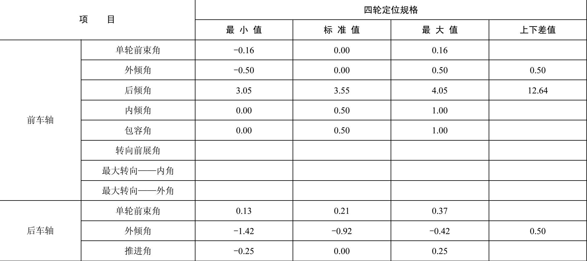 表2-12 北京现代途胜型汽车四轮定位数据