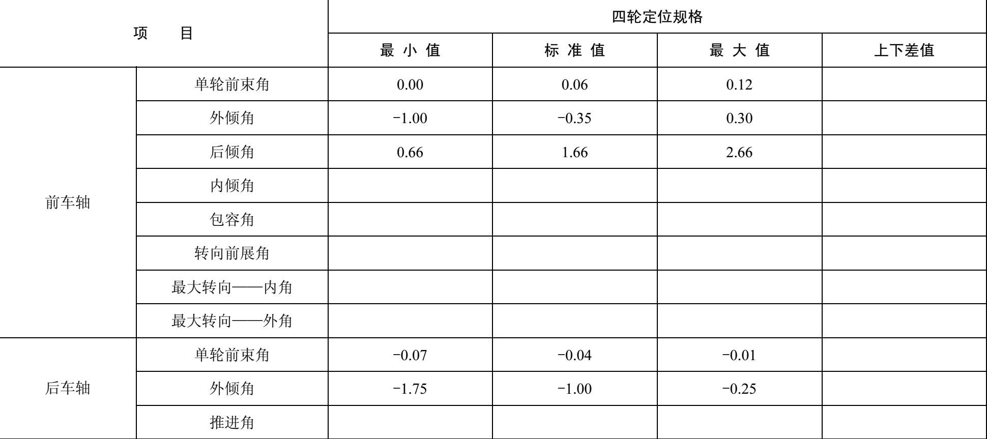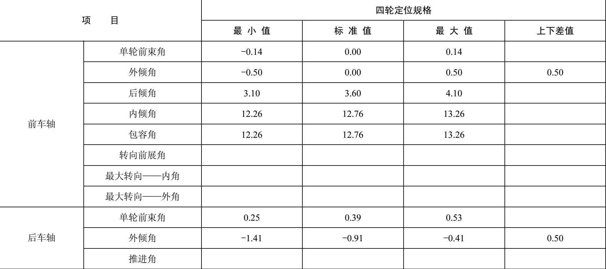 表2-37 东风悦达起亚嘉华商务车型汽车四轮定位数据