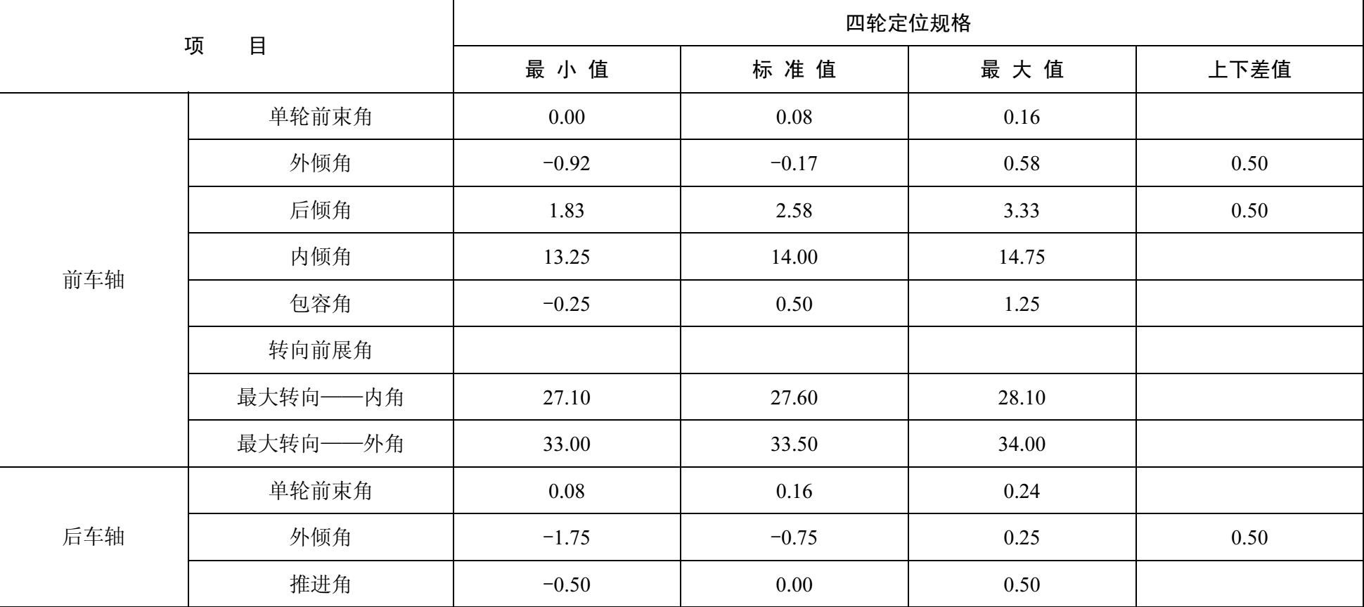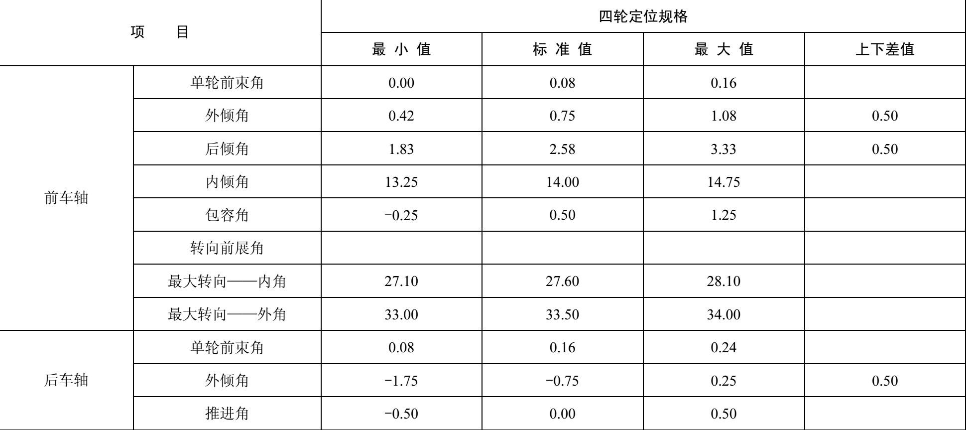 东风日产奇俊型汽车四轮定位数据如表1-17所示。