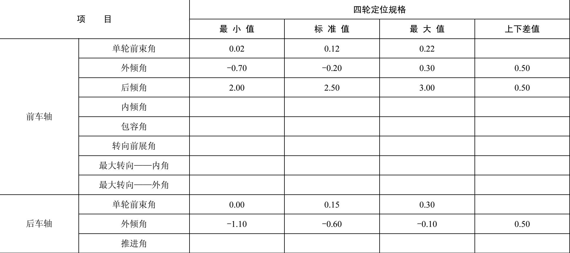 表1-20 东风日产奇俊X—TRAIL2.5手动型汽车四轮定位数据