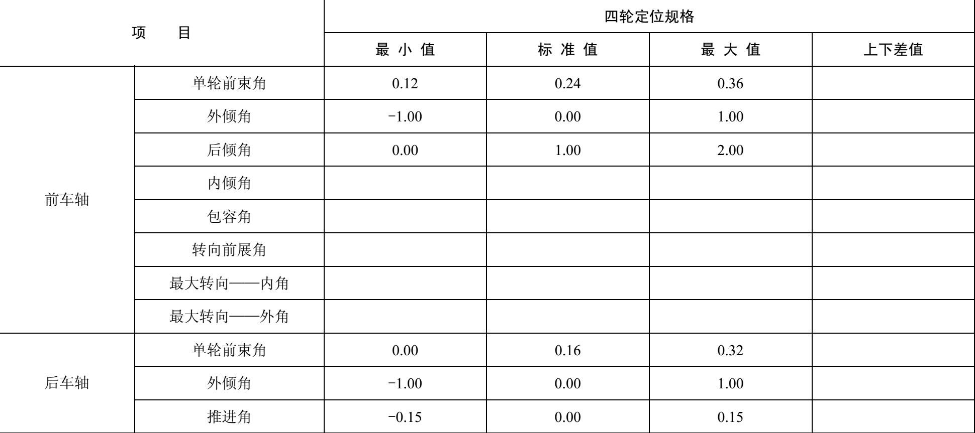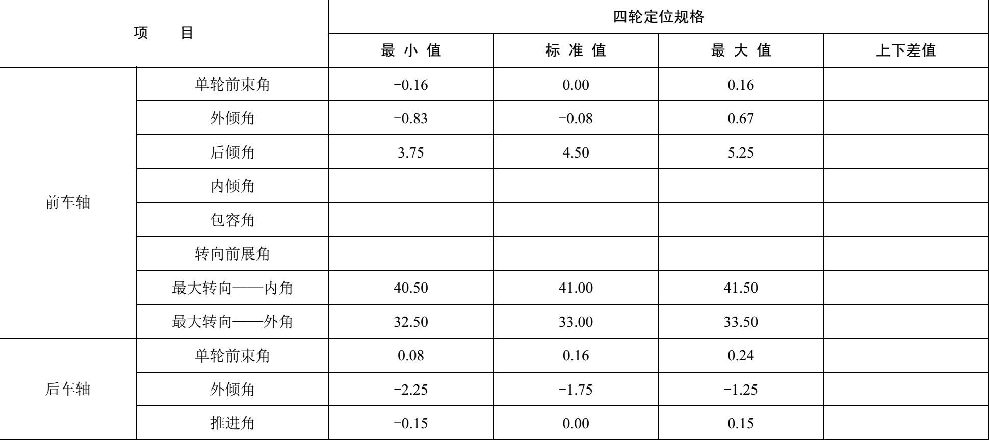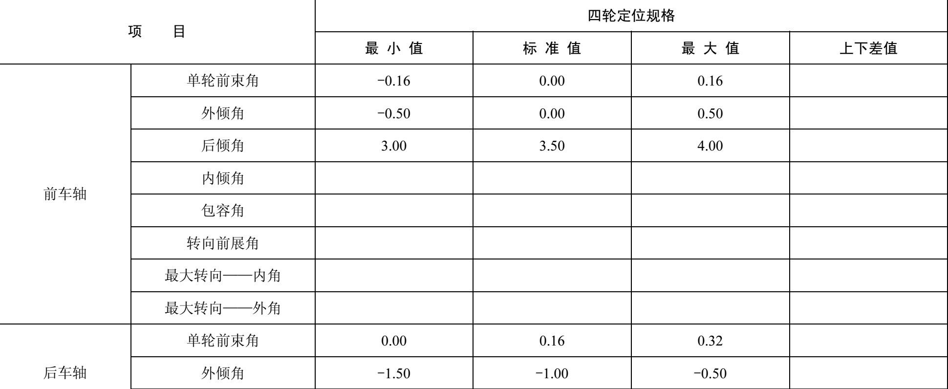 表1-86 广州本田雅阁型汽车四轮定位数据