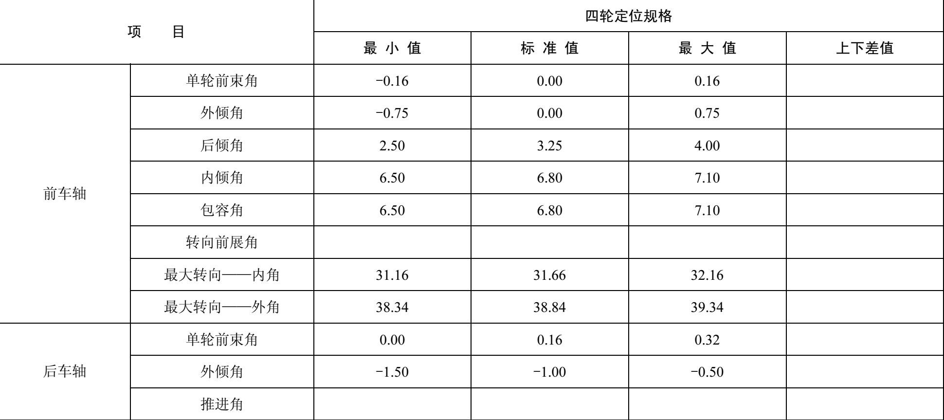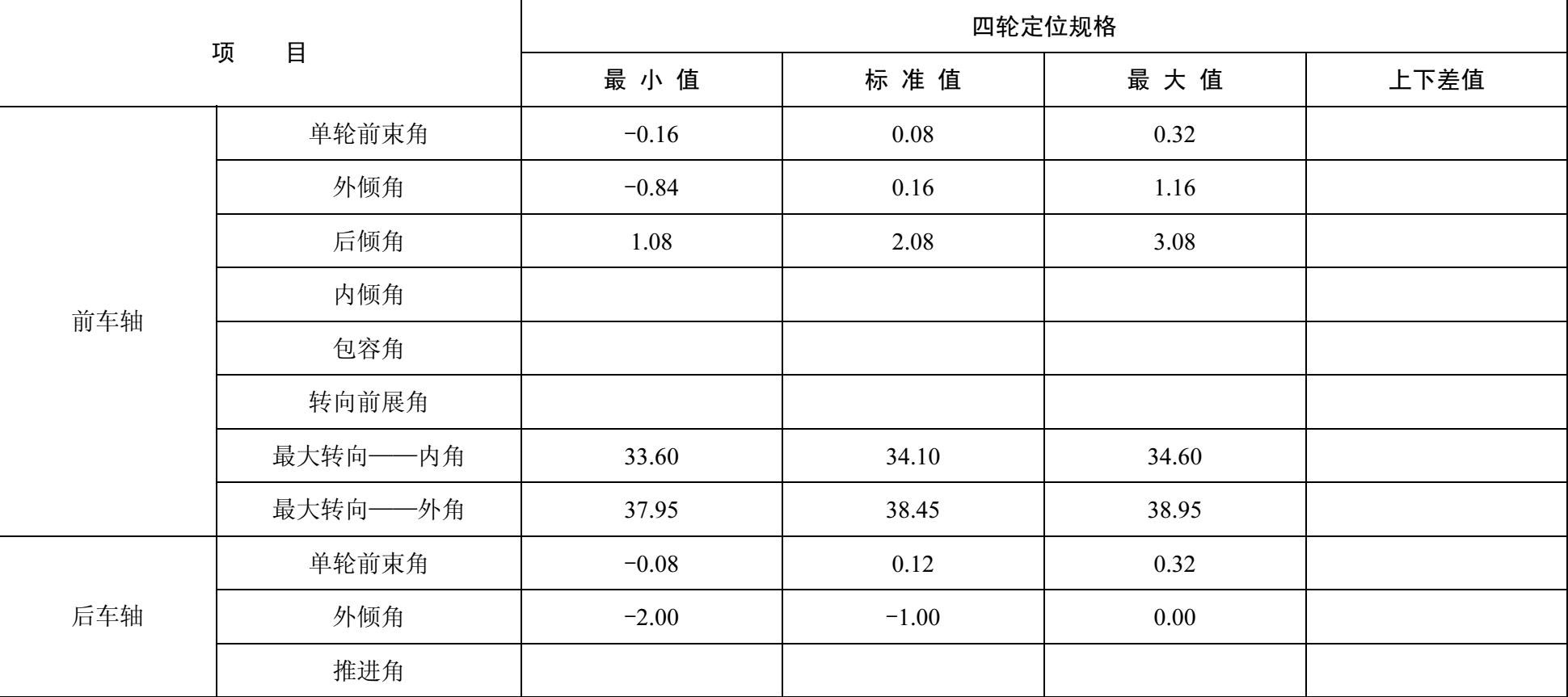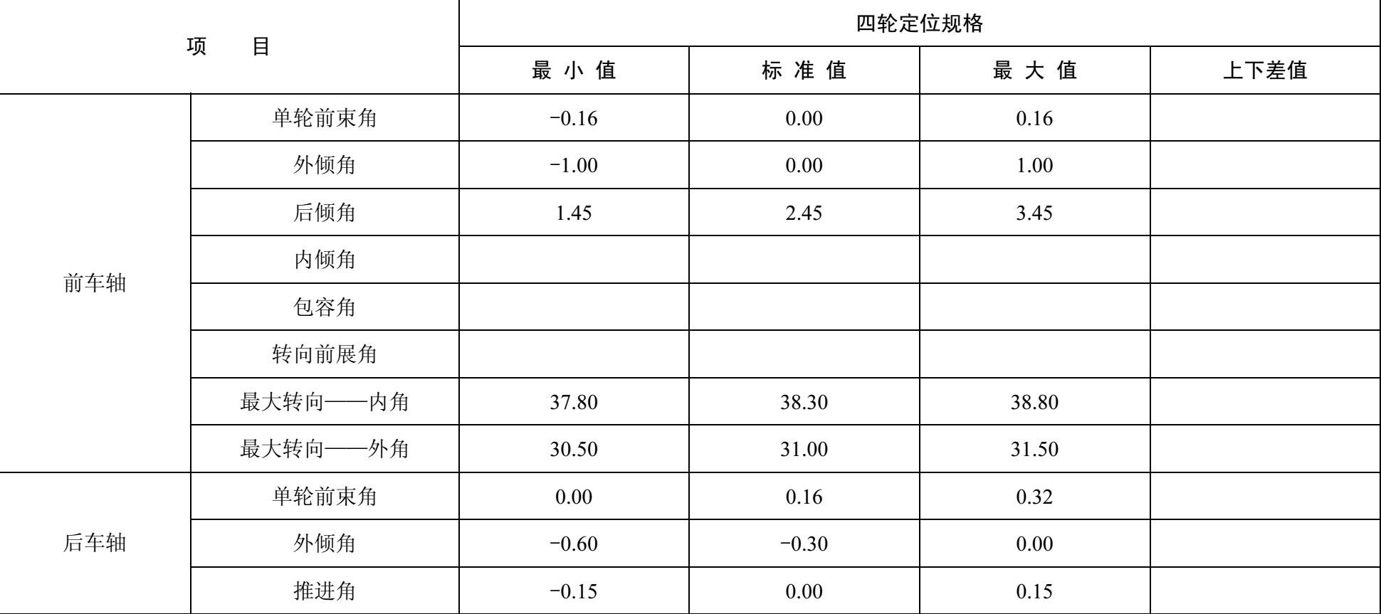 表1-86 广州本田雅阁型汽车四轮定位数据