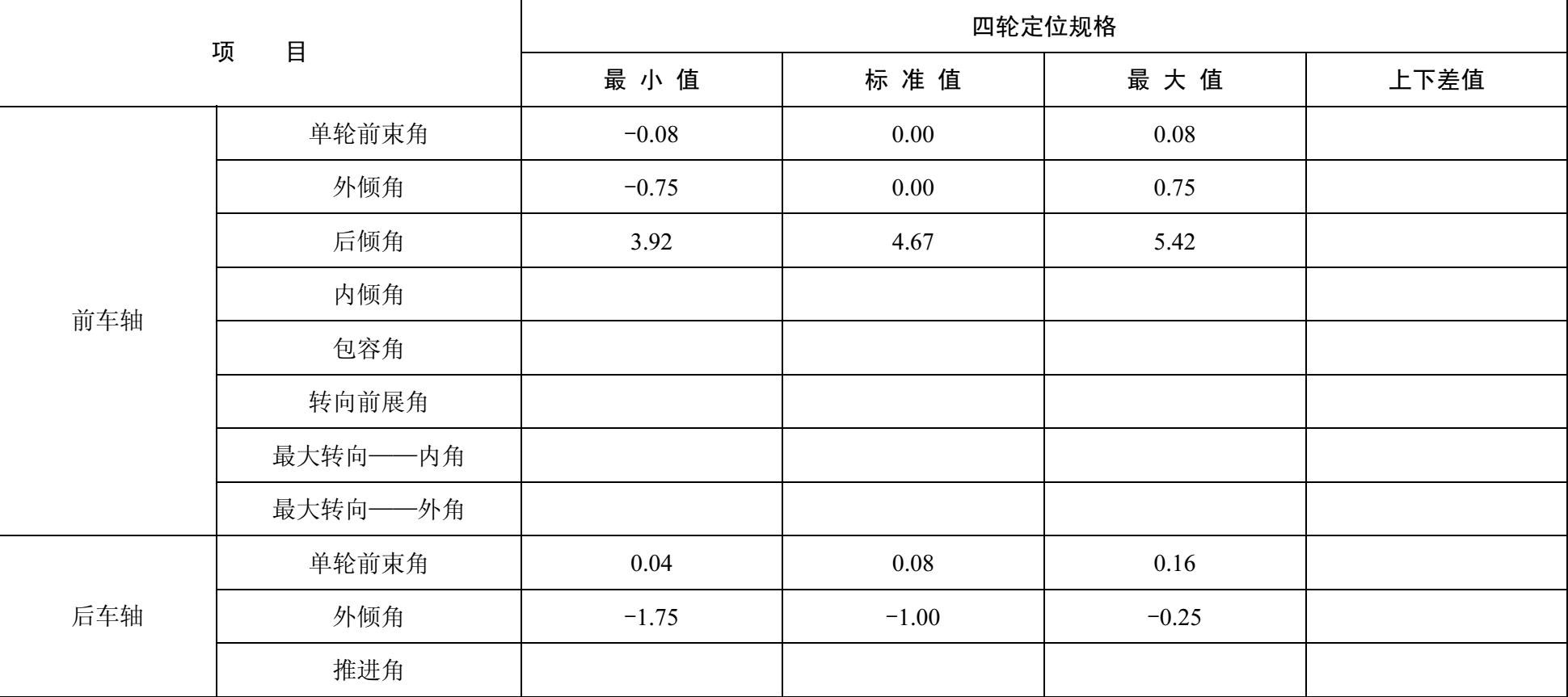 广州本田雅阁型汽车四轮定位数据如表1-86所示。