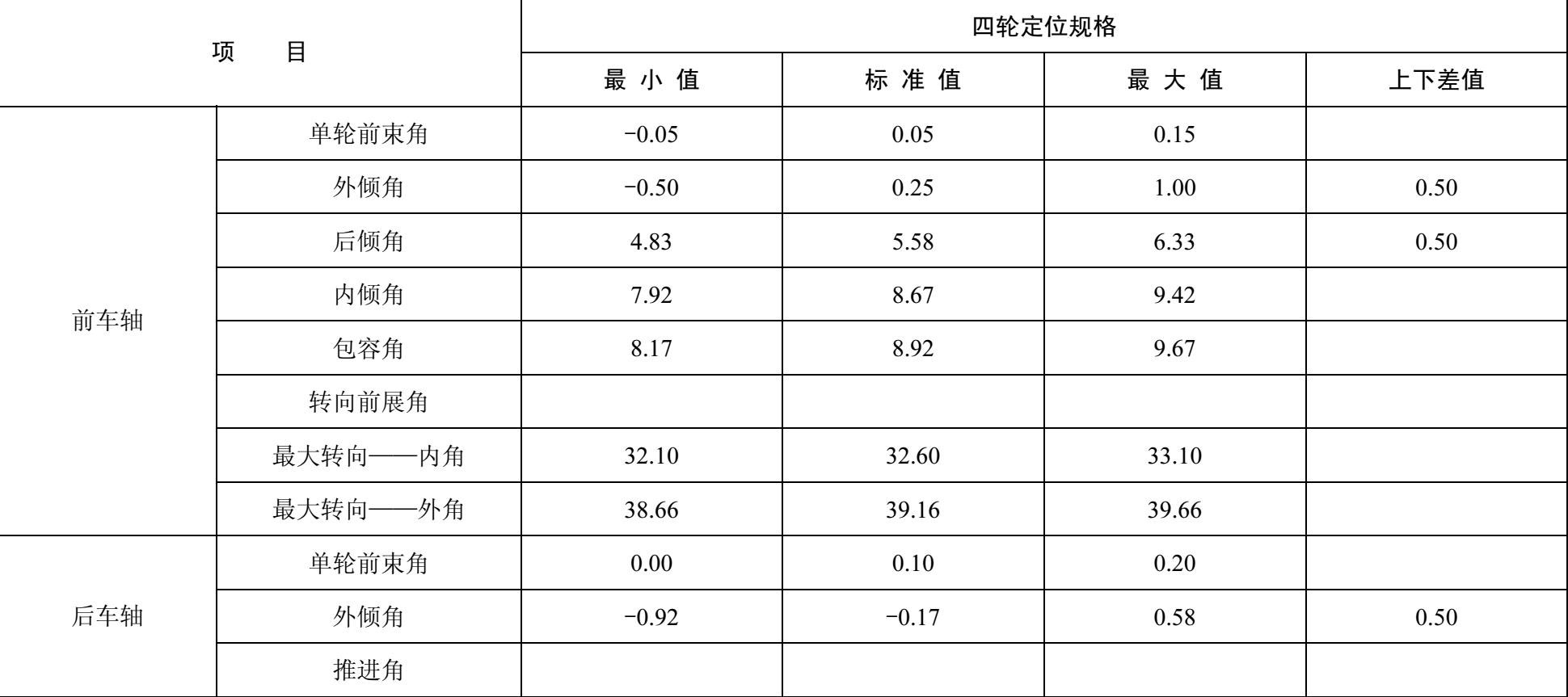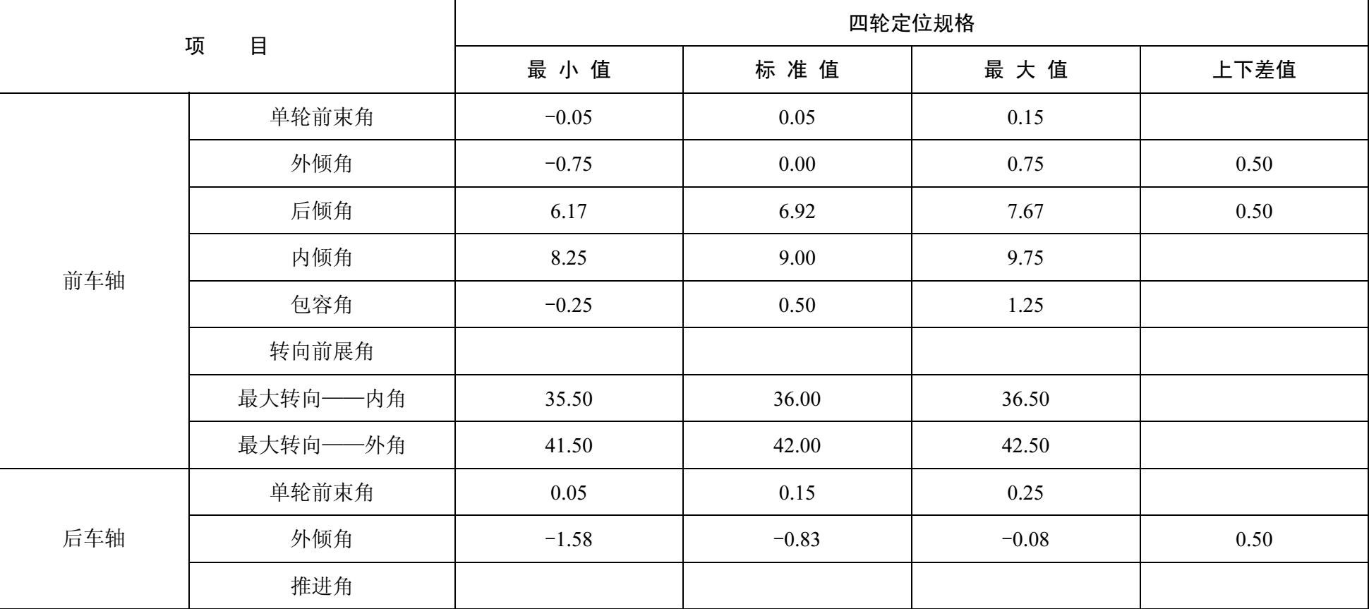 表1-120 一汽丰田特瑞四驱型汽车四轮定位数据