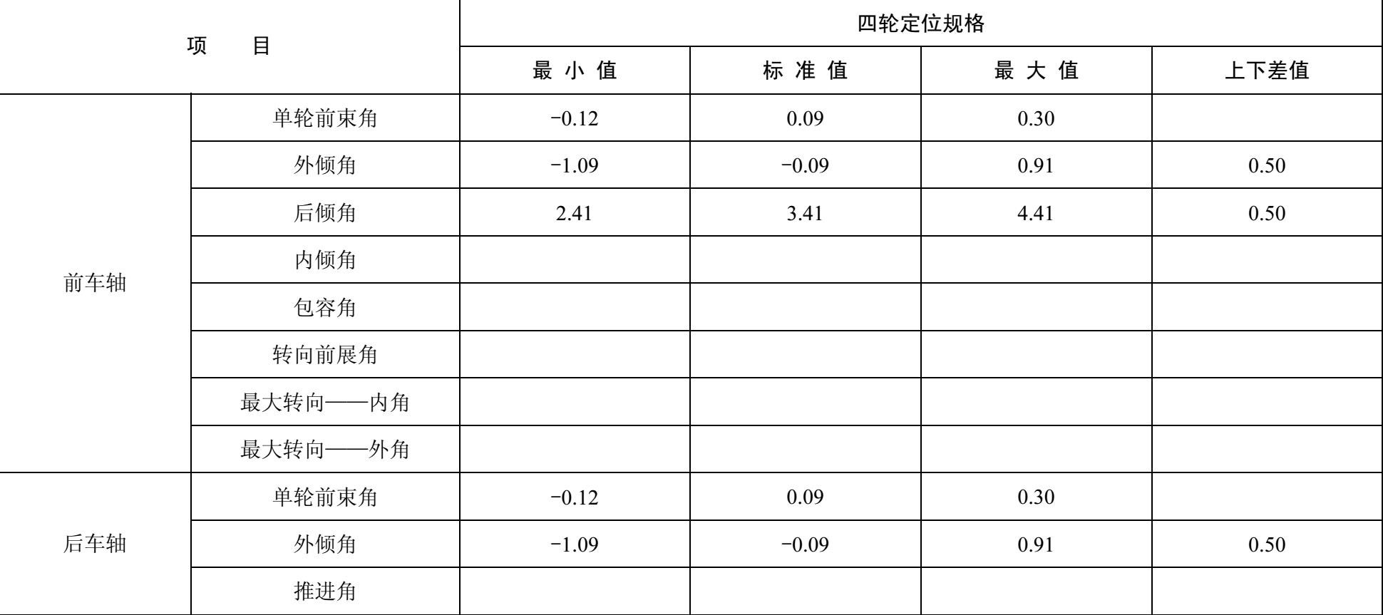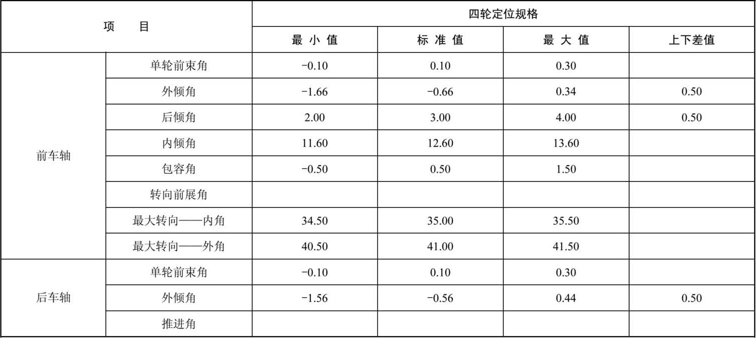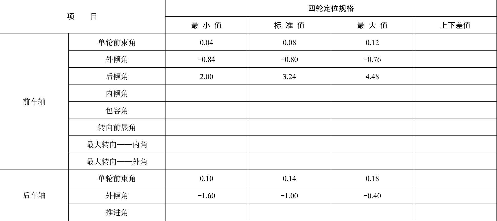 一汽马自达6型汽车四轮定位数据如表1-129所示。