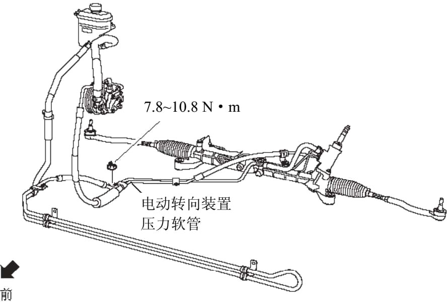 11. 按照图2-3所示拆下支架,并将动力转向压力软管置于车外。