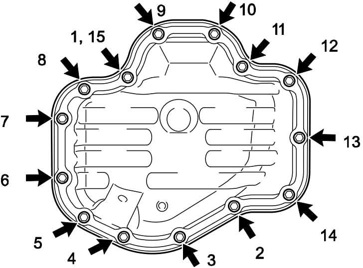 (4)按图示顺序均匀拧紧12个螺栓和2个螺母,如图1-44所示。
