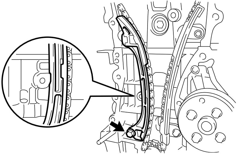 31. 拆卸螺栓和链条张紧器滑块,如图1-14所示。