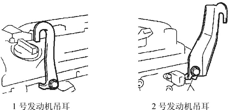 (2)将起吊装置安装到发动机的吊耳上和起重机上。