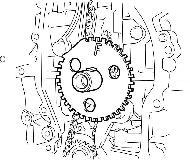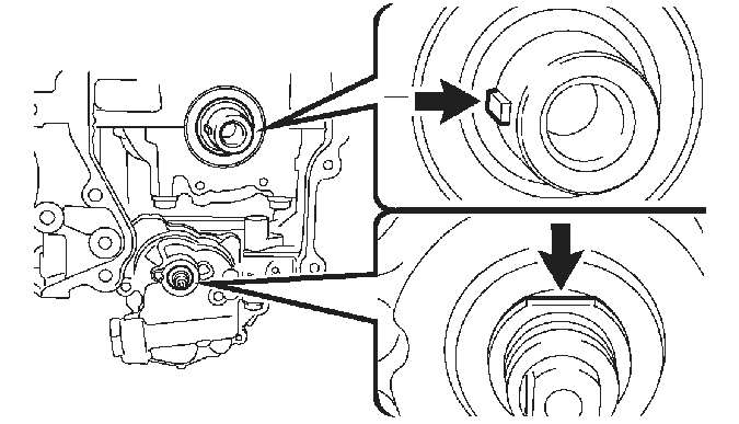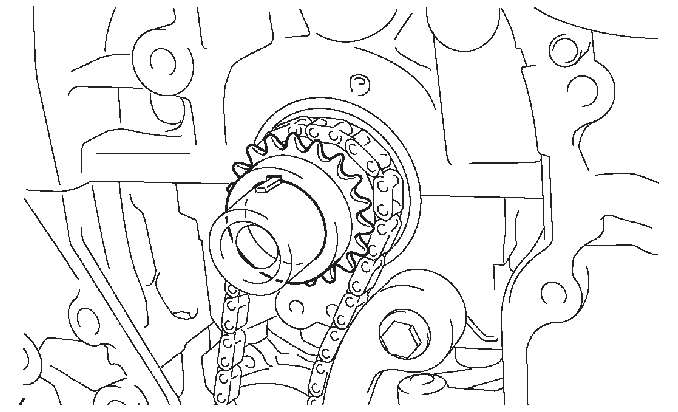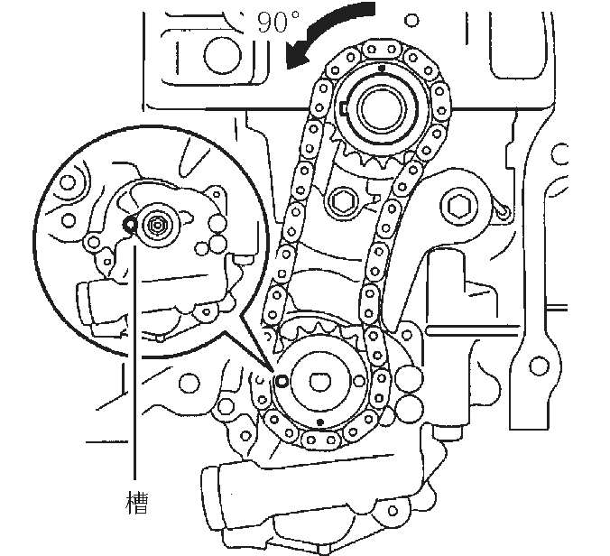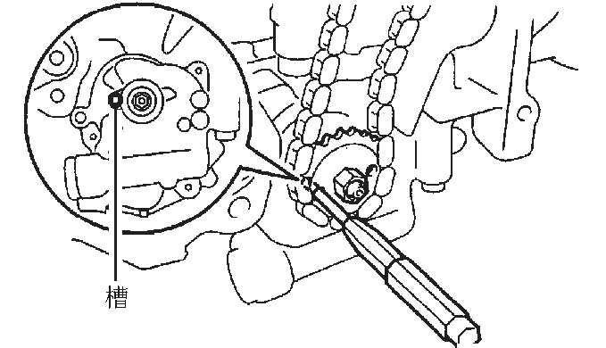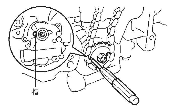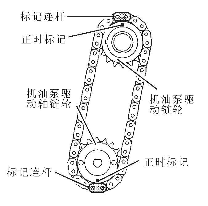(7)对准机油泵驱动轴链轮的调节孔与机油泵的槽。