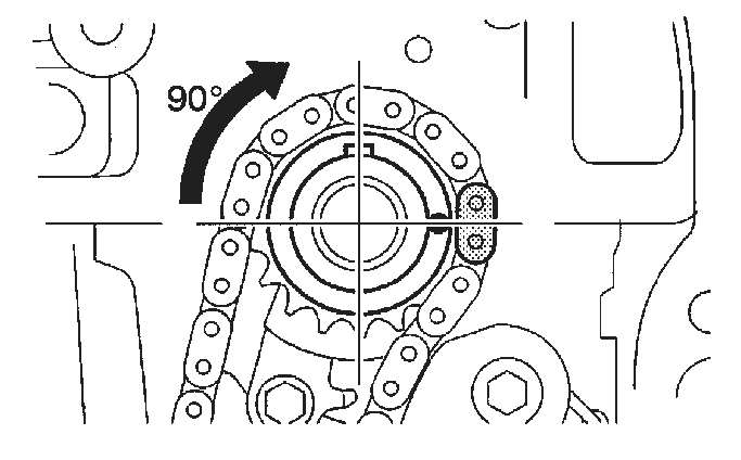 (1)按逆时针方向转动曲轴90º,使机油泵驱动轴链轮的调节孔与机油泵的槽对准,如图1-19所示。