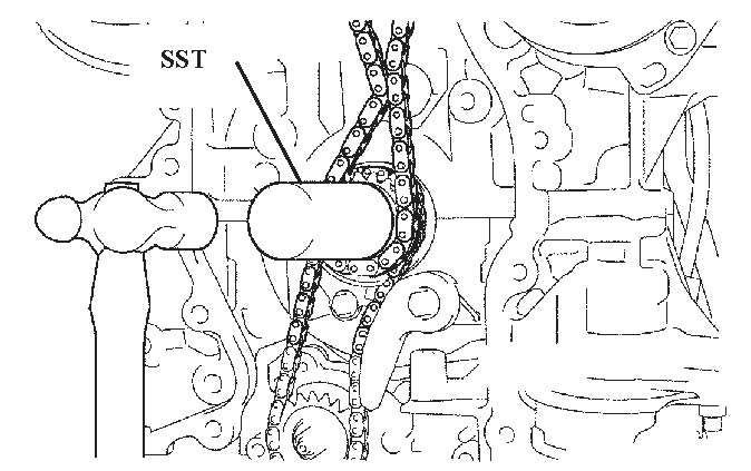 图1-33 用SST和锤子敲入曲轴正时链轮