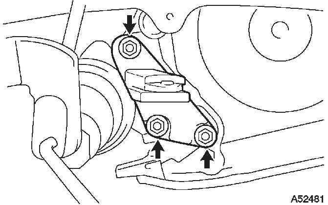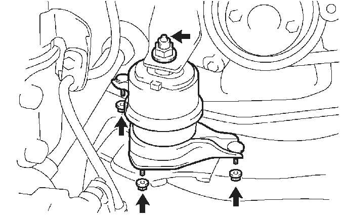 27. 拆卸发动机的安装支座RH。拆卸3个螺栓和发动机安装支座RH,如图1-12所示。