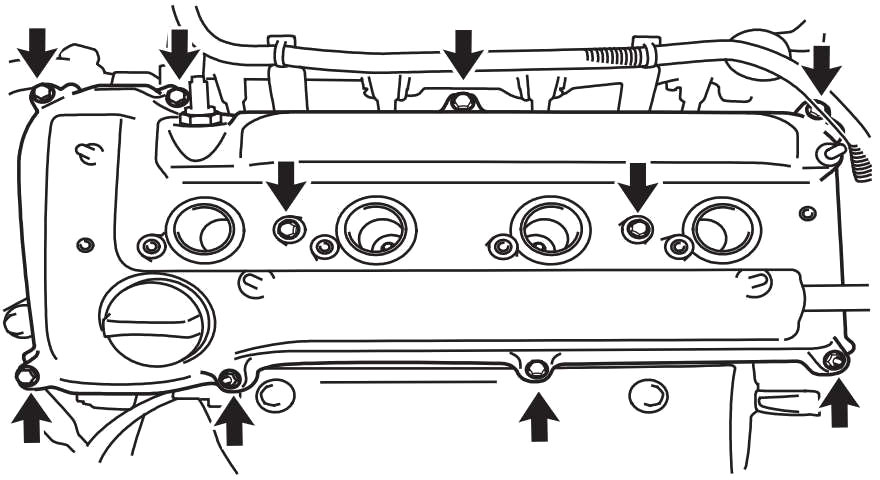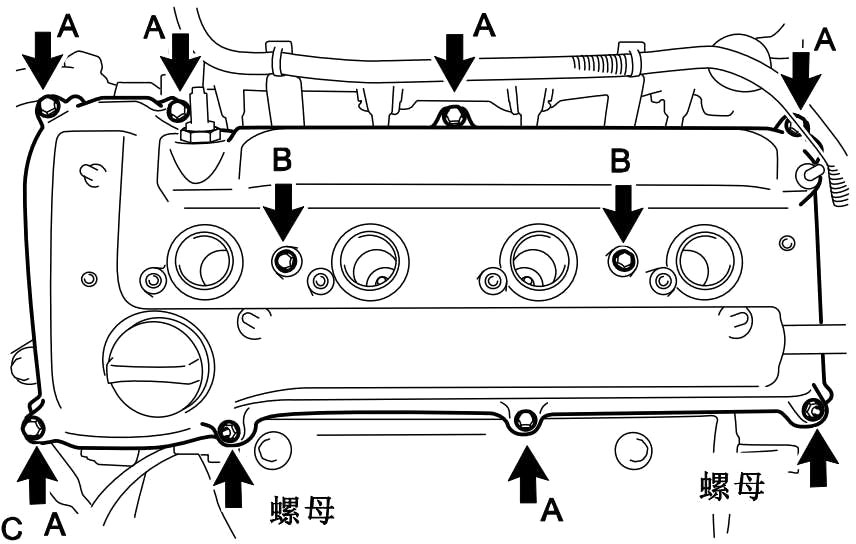 图1-3 拆卸8个螺栓、2个螺母和汽缸盖罩