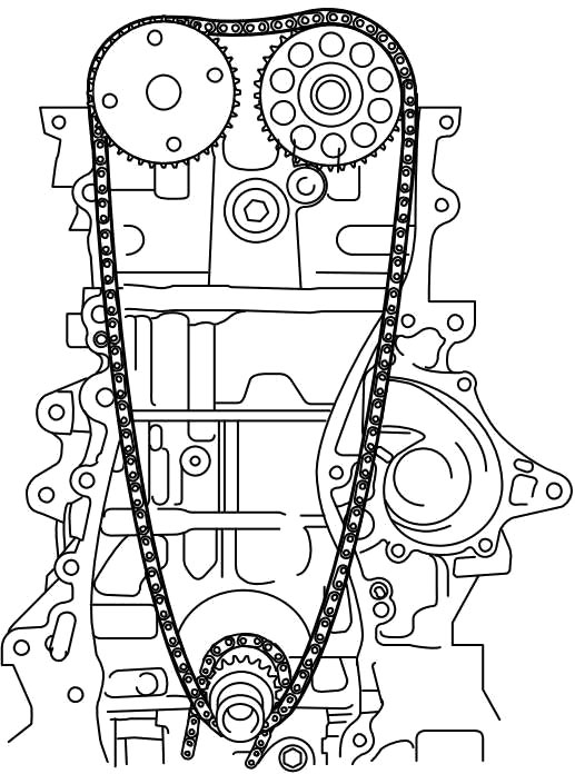 (4)用齿轮上的链条,将链轮安装到曲轴和机油泵上。