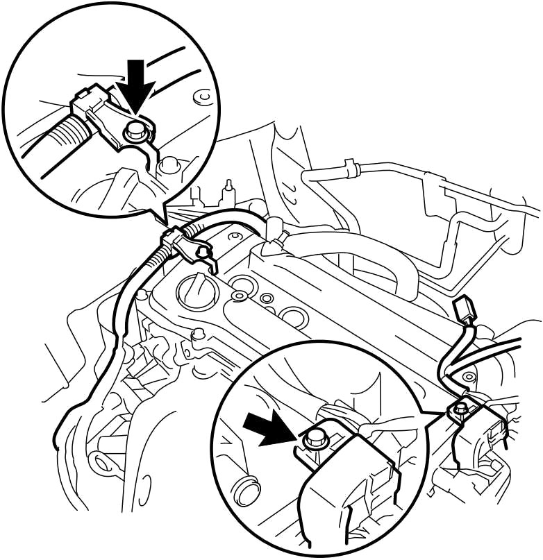 (1)拆卸2个螺栓并断开2根发动机导线,如图1-2所示。