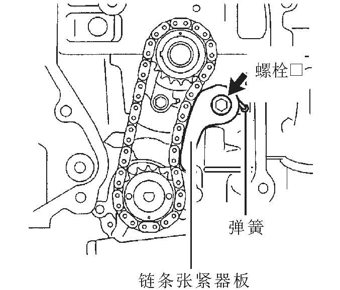 图1-21 拆卸螺栓、链条张紧器板和弹簧