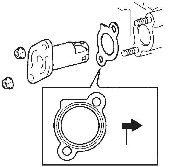 (2)用2个螺母安装新垫片和链条张紧器,如图1-46所示。