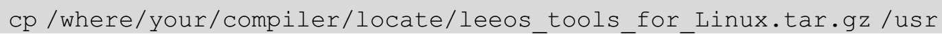 接下来运行命令1-2,然后是命令1-1和命令1-3。注意,要将“leeos_tools_for_Cygwin”改成“leeos_tools_for_Linux”。重启系统后,交叉编译工具就可以使用了。